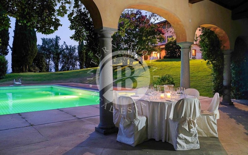 The property is located in a panoramic, quiet and private position, in the municipality of Biella, at the foot of the Pennine Alps and consists of a finely renovated and furnished eighteenth-century stately villa as well as various outbuildings, for a total of 17 bedrooms and 16 bathrooms. The villa has been masterfully renovated to preserve its splendid historic finishes: the cellars and the tavern, in particular, feature splendid cross and barrel vaults in brick. The upper floors, already intended for the family in the past, are instead characterized by more refined finishes with frescoed walls and decorated ceilings. The billiard room on the second floor, in addition to featuring splendid paintings on the walls, was painted to simulate an external tent. The main villa (1.630 sqm, 9 bedrooms and 10 bathrooms) is a large historic eighteenth-century building arranged on four floors organized as follows: - Basement: tavern with exposed bricks, kitchen, living room, dining room, service bathroom; - Ground floor: large living area with lounges, living room with fireplace, dining room, study, library, kitchen and service bathroom; - First floor: master bedroom with en-suite bathroom and walk-in closet, four bedrooms with walk-in closet and three bathrooms; - Second floor: billiard room, gym, sauna, kitchen, two bedrooms and two bathrooms. The building also houses two independent apartments both equipped with living room, kitchen, study, bedroom and bathroom. The caretaker's house (120 sqm, 4 bedrooms and 2 bathrooms) is a rural building on three floors, organized as follows: - Basement: garage and warehouse; - Ground floor: kitchen, living room, bedroom, bathroom and boiler room; - First floor: three bedrooms and bathroom. An annex (600 sqm, 4 bedrooms and 4 bathrooms) is located not far from the villa, in the final phase of renovation and made up of two bodies connected to eachother, it houses a total of four bedrooms and four bathrooms, plus various service rooms. To complete the property, immersed in the beautiful tree-lined garden, the pool house (130 sqm) with open roof and 16.5 × 7.5 m swimming pool, equipped with a comfortable solarium and a lovely relaxation area around it. The estate covers a total area of 8 hectares, partly woodland and partly meadows and arableland on which there was once a Vineyard that could be replanted. The Biella area extends to the foot of the Alps in northern Piedmont, with a variety of landscapes that makes it unique and surprising for every visitor who approaches it. Thanks to the richness and variety of the environment and landscape and the charm of places with a strong evocative power, the Biella area has often been defined as a "showcase of landscapes". It is among the very few territories in Piedmont and Italy to include multiple "UNESCO World Heritage" sites. Since 2019, the city of Biella has obtained the prestigious recognition of UNESCO Creative City, becoming part of the network of 246 cities, 11 of which in Italy, which share the objective of putting creativity and the cultural industry at the center of own local development plans and to actively collaborate on common projects at an international level. DISTANCES: Biella (2 km), Vercelli (47km), Novara (62 km), Turin (90km), Aosta (91 km), Milan (107km), Courmayeur (124km), Lugano (130km), Chamonix-Mont Blanc (145km).