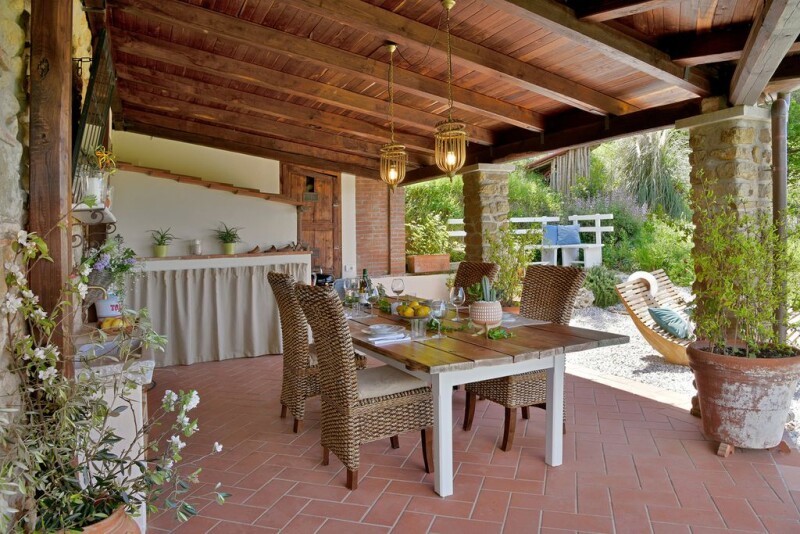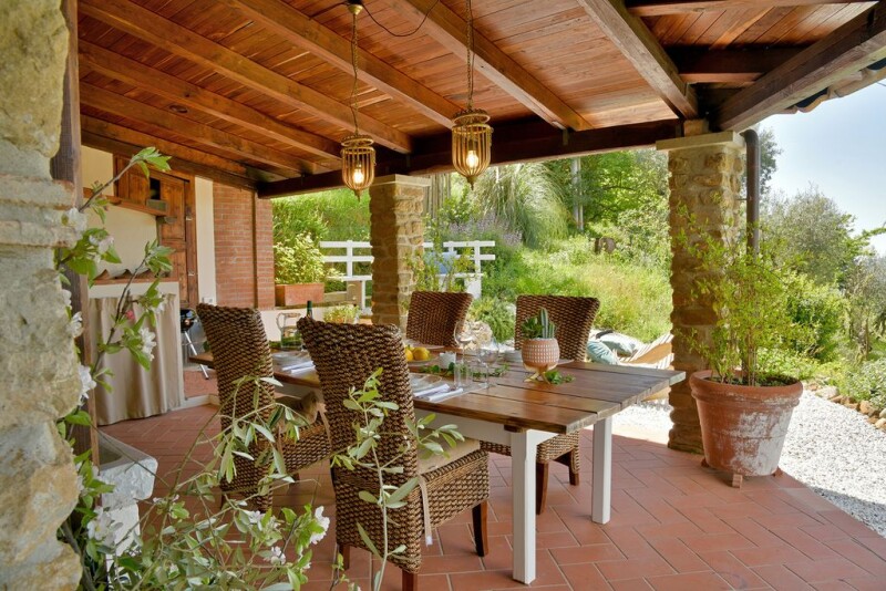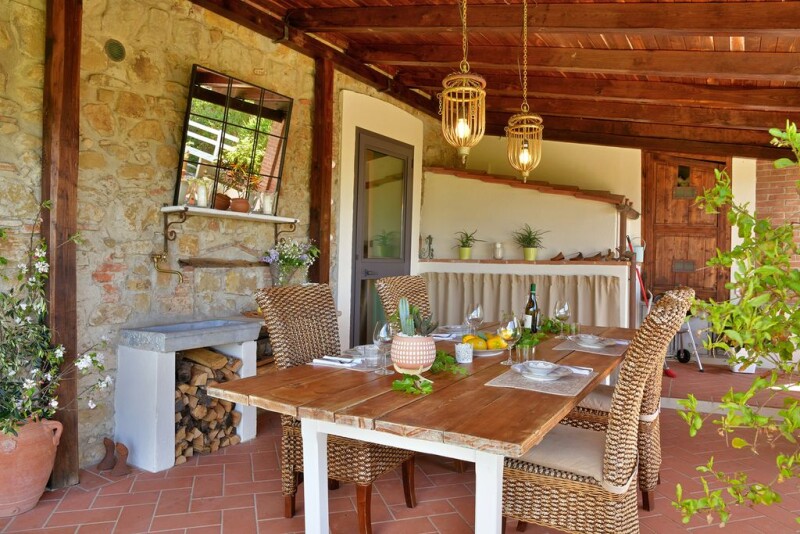This ancient barn from 1695, expertly renovated in 2000 and transformed into a home, offers a unique experience that combines the timeless charm of history with the most modern comfort. 105 m2 of beauty and harmony are spread over two levels, enveloping you in a welcoming atmosphere with attention to the smallest details. Let yourself be won over by the unique style that expertly mixes the authentic character of the Tuscan tradition with the most modern comforts. On the ground floor, a large living room with dining area invites you to relax and spend pleasant moments in company. Large windows flood the space with natural light, offering breathtaking views of the city and surrounding countryside. A veranda and an external porch expand the living area, creating the ideal environment for outdoor dining and enjoying the evening breeze. A bathroom with shower completes the floor. Going up to the first floor, we find the sleeping area, consisting of two bedrooms, one double and one with a bunk bed, and a bathroom with shower. The master bedroom is equipped with air conditioning to ensure a restful sleep even on the hottest nights. The renovation, carried out with care and attention to typical Tuscan details, left nothing to chance. Ceilings with exposed beams, which tell the story of the farmhouse, harmonize perfectly with the stone walls, giving off a rustic and authentic atmosphere. Polished wood details add a touch of sophistication, while sumptuous furnishings welcome guests into an embrace of comfort and relaxation. The large glass walls, like natural theater wings, let sunlight in, flooding the open-concept space with extraordinary brightness. The modern, sober and elegant furnishings integrate perfectly with the rustic elements, creating a harmonious blend of tradition and innovation. Lively objects, expertly distributed throughout the interior, give a touch of personality and cheerfulness to the environment. Outside, from the beautiful terrace where you can sip a glass of wine or relax, you can admire the magnificent view of the city of Pescia and the greenery of the Tuscan countryside. Thanks to the wood-fired oven you can prepare gourmet pizzas and delicious dishes, just like in the Italian tradition. The property is a place of technology and nature that come together to offer a perfect stay. Thanks to the programmable electric curtains with smartphone app and remote control, it is possible to adjust natural light with a simple gesture. Furthermore, the curtains are equipped with a thermo-reflective coating that helps keep the house cool in summer and warm in winter. The BTicino thermostat can be operated remotely, allowing you to regulate the temperature of the house. In this way, it is possible to return and find a comfortable and welcoming environment, without wasting energy. Thanks to the excellent Wi-Fi coverage it is possible to surf the internet or work without interruptions. There is an exclusive courtyard and a space in front of the house where you can relax. The property has a spring water cistern positioned above the hill, which ensures a supply of fresh, pure water at all times. Furthermore, an emergency tank located further down ensures continuity of supply. To reach the property you have to travel about 1.5 km on a narrow, uphill road, with some hairpin bends. It is definitely worth it because the location surrounded by nature, the absolute tranquility of an authentic place away from the city will be a reward. An ideal place to live surrounded by nature or to use as a holiday home to spend relaxing moments. Thanks to its privileged position, immersed in the uncontaminated nature of Tuscany, and its timeless charm, this property is included in the international summer rental circuit.