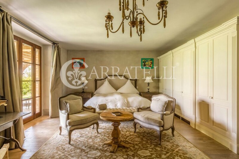 Enchanting property immersed in the green Tuscan countryside, a few kilometers from the sea and the city. Luxury complex of 2745 sq m with 34 hectares of land plus swimming pool, tennis court and private lake, surrounded by the characteristic olive trees and vineyards of the property, in Massa Marittima, in the province of Grosseto. Description The beautiful estate consists of 5 main buildings plus ancillary facilities and other services for a total of 2745 square meters inside. The main villa of 714 square meters is spread over three floors and houses various convivial spaces such as large lounges with fireplaces, a reception area, a restaurant and fully equipped kitchen, and five bedrooms with en-suite bathrooms. Two buildings, 425 and 419 square meters respectively, are dedicated to farmhouse hotels and house the sleeping area consisting of as many as twelve bedrooms with en-suite bathrooms. Two structures of 289 and 235 square meters have been earmarked for recreational and spa activities and treatments. Concluding the elegant property are a wine cellar, a cinema room, facilities dedicated to olive oil production, a stable, other service rooms and a large parking area. Outdoor Spaces The wonderful property is surrounded by an authentic and unique Tuscan landscape with valleys of olive trees and vineyards. 34 hectares of land delimit the immense spaces, where expanses of olive trees, the vineyards and the private park alternate. 12 ha in the main territory and 22 ha with field and olive grove with 500 trees are located about 2.5 km toward the town of Massa Marittima. On the main territory there are about 2 ha of vineyards of which the main variety is Cabernet Sauvignon, 4.5 ha of olive grove with about 1100 trees and an artificial lake of 0.5 ha in the lower part of the property. The land, free from vineyards and groves, is intended for buildings and places for active recreation such as tennis court, golf course, paddock for walking horses, and agricultural facilities for viticulture, olive harvesting, etc. From the terrace of the villa there are panoramic views of the picturesque Tuscan countryside and the town of Massa Marittima, and the swimming pool with sunbathing area is ideal for relaxing and enjoying all this enchantment. Condition and finishes The property has been carefully and recently renovated by the current owners, who have made it a real jewel. The buildings have typical Tuscan features thanks to the stone architecture with wall paintings decoration in the form of frescoes for some buildings and marble everywhere. Potential uses The splendid complex among the Tuscan hills is the ideal destination for those who want the tranquility of the countryside without giving up the services offered by the place, as well as being a paradise for sports lovers. Location The estate is located in the municipality of Massa Marittima, in the province of Grosseto, a few kilometers from the crystal-clear beaches of the Maremma and not far from the main cities of Siena and Florence as well as from the renowned resorts of Chianti Classico.