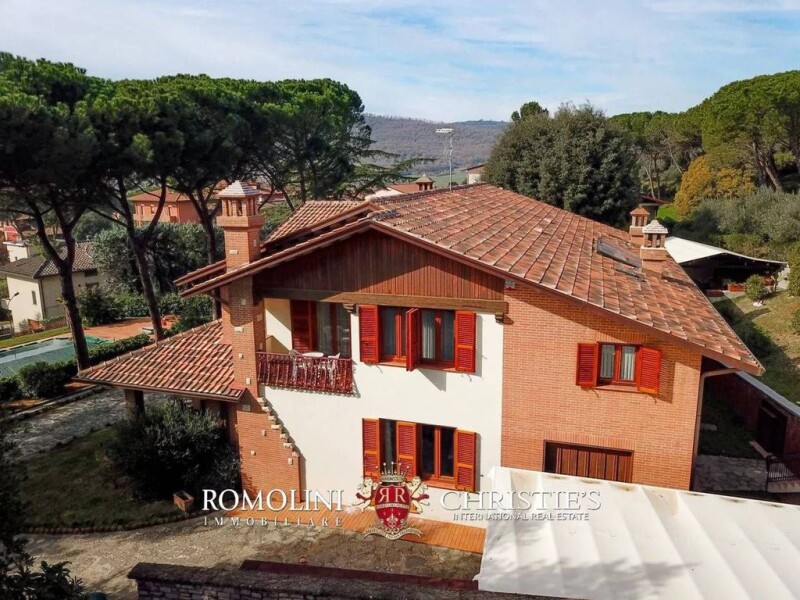 In the characteristic center of Magione, on the shores of Lake Trasimeno in Umbria, small villa with garden for sale. The property (over 500 sqm in total) is a tastefully renovated building with modern installations, currently in use as a B&B (8 bedrooms) but easily convertible into a private home. The 5,300-sqm garden around the property is fenced and lighted and houses the 12 × 8 m swimming pool. The village offers all basic services (about 500 m, also easily reachable on foot) and for the hospital one just needs to reach Perugia (19km; 25’). Magione train station is 600 m from the property and provides a quick connection to Arezzo (and from here to much of Tuscany) and Perugia. Perugia airport, with many European destinations, is also less than half an hour's drive from the villa. DESCRIPTION OF BUILDINGS, STATE AND FINISHES The villa (480 sqm – 5,165 sqft) is a building dating from 1970-1971, which was entirely renovated in 2001 with particular attention to the systems, a factor that had an immediate yield both in benefits and in reducing the running costs of the structure. The building has two floors: - Ground floor: entrance hall, library, office space, large professional kitchen with pantry, dining room, living room with bar area, service bathroom and bedroom with en-suite bathroom; - First floor: seven bedrooms with en-suite bathrooms (some with balconies) and access to the partially practicable attic that is very useful as a storage room. In terms of systems, the house has a state-of-the-art central heating plant that includes solar panels (400 liters of hot water) and a condensing boiler (12,000 – 60,000 kcal). The electrical system has 220V and 380V lines. At the heating level, on the other hand, we find a heat pump (hot/cold air) with separate control for individual rooms. Speaking of finishes, the villa has fixtures (doors and windows) made of Douglas fir, double glazing, parquet and marble floors (Siena and Carrara), fireplaces made of Siena marble and hand-carved pietra serena, and custom-made furniture made strictly of walnut. There is also a cottage (50 sqm – 538 sqft) in the garden that is currently used as a pool house, but potentially convertible into a lovely independent guest suite. A convenient private garage (30 sqm – 323 sqft), a storage room (50 sqm – 538 sqft) and a small greenhouse (12 sqm – 129 sqft) complete the property. EXTERIOR The villa is surrounded by 5,360 sqm of well-kept garden, fully fenced and equipped with about fifty light points controllable by centralized panel. Two entrances, located on opposite sides of the property, open onto public roads. The olive trees dotting the green produce about 450 kg of olives a year from which an excellent extra virgin olive oil is obtained. A short distance from the villa, in the middle of the garden, is the 12 × 8 m swimming pool with terracotta sunbathing area. Moreover, a not insignificant detail, the property still has exploitable volume for the construction of new buildings (3,300 cubic meters, roughly equivalent to 1,100 square meters). CLOSEST CITIES AND TOWNS Town with services (200m; 2’), Passignano sul Trasimeno (15km; 20’), Perugia (19km; 25’), Umbertide (31km; 40’), Cortona (35km; 40’), Assisi (42km; 40’), Marsciano (46km; 40’), Montepulciano (51km; 50’), Montefalco (56km; 1h), Todi (60km; 50’), Pienza (67km; 1h), Spoleto (77km; 1h), Orvieto (91km; 1h 25’), Terni (95km; 1h 10’) CLOSEST AIRPORTS Perugia San Francesco (27km; 30’), Ancona R. Sanzio (131km; 1h 40’), Firenze A. Vespucci (156km; 1h 40’), Grosseto C. Baccarini (174km; 2h), Roma Ciampino (199km; 2h 35’), Roma Fiumicino (214km; 2h 40’), Pisa G. Galilei (216km; 2h 25’), Bologna G. Marconi (237km; 2h 30’).