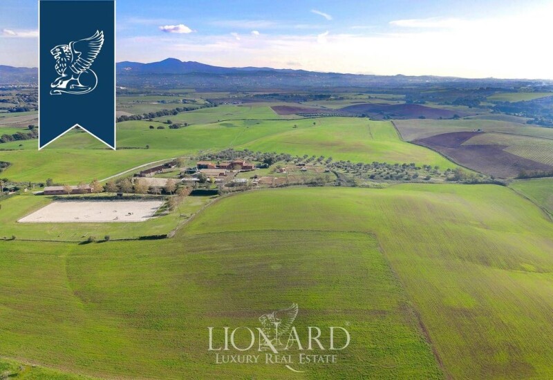 On the outskirts of Rome, there is this luxury estate with stables for sale, which belonged to the Medici family in the 14th century. The property covers an area of about 80 hectares of volcanic land, with a part dedicated to arable land and two sources of spring water. The charming two-storey farmhouse has been recently renovated and measures about 380 sqm; on the ground floor there is a bright rustic-style living area with terracotta floors, ceilings with exposed wooden beams and brick fireplaces, a study, a double bedroom, and five bathrooms. Upstairs there are six double bedrooms, two bathrooms, and a kitchen. This splendid estate also has an area dedicated to the breeding and shelter of horses, with stables that can accommodate up to 45 horses and two equestrian fields. This luxury estate for sale is perfect for those seeking tranquility in their home, one step away from the gates of the city of Rome. Ref: 5904.