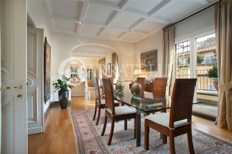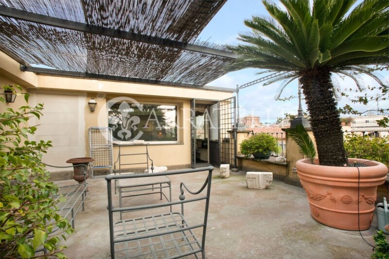 Exclusive Penthouse with Panoramic Terrace in the Heart of Rome In the beating heart of Rome, just a few steps from the Spanish Steps and Via Condotti, stands this extraordinary 305 m² penthouse, an authentic jewel of luxury set in a period building of the early nineteenth century, elegantly renovated. A unique opportunity for those who wish to live immersed in history and elegance, without sacrificing maximum comfort. A Prestigious and Strategic Location Located in Via Frattina, one of the most exclusive streets of the Capital, the penthouse occupies the fifth floor of a historic building with elevator, enjoying an optimal exposure to the south, east and west. The privileged location, between Piazza del Popolo and the Spanish Steps, offers a perfect balance between downtown vibrancy and privacy, providing an oasis of tranquility within walking distance of the city's best stores, restaurants and services. Refined Spaces and Unique Atmosphere The spacious entrance hall with checkroom area leads to a majestic triple living room with a livable balcony, perfect for hosting guests or enjoying moments of relaxation in an elegant and bright setting. A second representative living room adds charm and versatility to the spaces. On the upper level, an evocative fireplace and an outdoor kitchenette open onto a panoramic terrace from which to admire a breathtaking view over the rooftops of Rome, providing a unique setting for dinners and convivial moments under the skies of the Capital. Exclusive Sleeping Area and Comfort The living area is completed by a double eat-in kitchen with office and a guest bathroom with private access. The sleeping area features a large master suite with bathroom and walk-in closets, accompanied by spacious double bedrooms with walking closets and en suite bathrooms. A convenient laundry and ironing room, a second separate entrance and a small service room with en suite bathroom add further functionality and privacy. Fine Materials and Refined Design The entire property has undergone a high-end renovation, combining classic elegance with contemporary details. The fine parquet floors and marble-finished bathrooms create a refined atmosphere, while the terraces, paved in antique terracotta tiles, offer a timeless corner of charm. Every room is air conditioned, with careful lighting design to enhance each space. A Unique Opportunity in the Historic Center of Rome Perfect as a primary residence for a discerning family or as a prestigious representative residence, this penthouse is a unique opportunity for those who dream of living in the heart of Rome with uncompromising luxury, exclusivity and comfort.