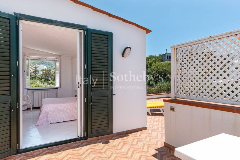 On the promenade of Forio, which leads to the beautiful bay of Citara, and not far from the city center, stands an enchanting complex immersed in a lush garden, consisting of a large manor house, made according to the typical island architectural canons, with swimming pool and private sea descent, and three small independent depandances - each accessible by it's own separate entrance. The main villa, developed on two floors. On the ground floor we find the living area, which consists of a bunch of wide lounges, both indoor and outdoor, directly facing the pool and adjacent terraces. From the lounge you can access directly to the dining room, the kitchen and the service room as well as one of the five bedrooms with en suite bathroom. Upstairs we find the other bedrooms and bathrooms. The floor is completed with a wide terrace which enjoys an extraordinary sea view as well as the garden below. Below the manor house, connected with a comfortable staircase, we find three small independent depandances. Each of them has recently been renovated and equipped with every comfort, including kitchen and private garden. The property is completed by a wide parking area. The property enjoys a private descent that leads directly to the enchanting and crystal clear sea enclosed among the typical ischitane volcanic rocks. There is the possibility of selling another adjacent large property. This property is developed in length on one floor, and is currently divided into two units.