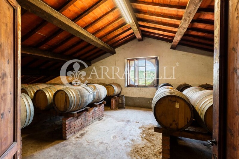 A few kilometers from Florence important organic wine and oil farm with about 40 hectares of land, winery for the production of oil and wine as well as manor house and warehouses Description The organic wine and olive oil farm is an important productive reality. The farm features the winery of about 400 sq. m. with vat cellar, bottling, storage and aging area in addition to a display/sales area and offices. On the first floor of about 395 square meters large apartment with kitchen, large living room and four double bedrooms with two bathrooms in addition to a large room once used as a barn. Various outbuildings for storage and warehouse use serve the farm. Condition and finishes The farmhouse and cellar are in excellent condition. The cellar has been equipped to perform the whole process of winemaking and production of the excellent Tuscan olive oil. The farm is well connected to the main roads and is convenient to be reached by vehicles for the final distribution of the bottled product. The master apartment located on the first floor of the cellar is characterized by terracotta floors, original wooden doors, wooden beams characterize the high ceilings of the living area . Outdoor Spaces The organic farm has about 40 hectares of land cultivated as follows: about 182,000 square meters of olive grove (about 100 plants/Ha, BIO from 2022); 70,000 square meters of vineyard (Sangiovese, Cabernet Sauvignon and Merlot), plants less than 20 years old in addition to 5,000 square meters under construction (grapes for Vin Santo), about 20,000 square meters of arable land and 120,000 square meters of forest. The land planted with olive trees is about 7.5 hectares Potential uses The farm is perfect for a family who wants to continue wine and oil production or for an entrepreneur who wants to produce excellent oil and wine in an exclusive and personal way . Location Magical and relaxing location perfect to discover Tuscany with its breathtaking landscapes in every season, history, tradition, culture and taste. Strategic location just a few kilometers from the main services of the town of Pontassieve. Renaissance Florence is only 20 minutes away by car.
