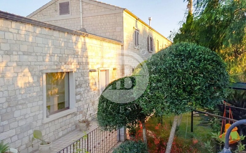 Just 3 km from the commercial center of Modica, nestled in a magical atmosphere and surrounded by a lush 1,000 sqm garden, we offer for sale a beautiful 300 sqm duplex, recently renovated with local natural materials, respecting the traditions and rural culture of the area. The property is completely independent, with its own private entrance, providing total privacy and comfort. The house is developed on a single level and features a spacious entrance/living room, a large kitchen with an island, a bright 70 sqm living room with a fireplace and an antique wood stove, a laundry room, a double service bathroom, and a hallway leading to the sleeping area. This includes two bedrooms, two bathrooms (one with a bathtub and one with a hydro-massage shower), and a mezzanine with an independent master bedroom. The sleeping area is also equipped with built-in wardrobes to optimize space. At the back of the house, a large covered veranda with a barbecue corner offers the perfect place to enjoy the outdoors. In the more private area, there is a beautiful pool (11.55 x 5 m) with a solarium, a changing room/bathroom, and technical rooms. The property also includes a 30 sqm garage and an outdoor parking space. The house is equipped with modern technologies, including thermal-cut sliding windows, a heating system with three energy sources (GPL, Biomass, and a fireplace), an advanced alarm system, and remote-controlled video surveillance for maximum security. The flooring in the sleeping area is parquet, while the living area features handmade terracotta tiles. The exposed wooden beams in the ceiling create a cozy and relaxing atmosphere. The garden, enriched with a centuries-old tree, is equipped with an automatic irrigation system and lighting.