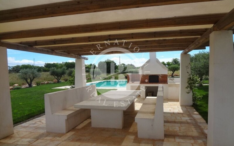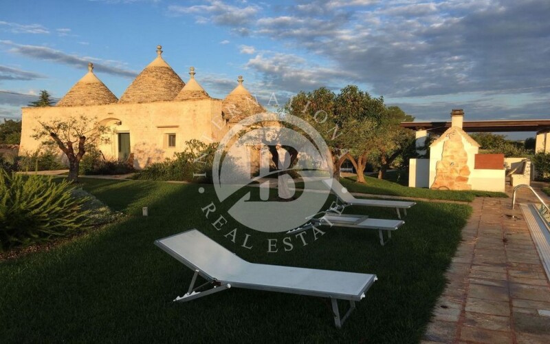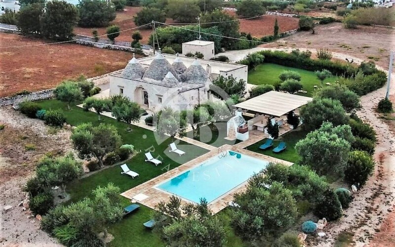 This captivating property, a panoramic farmhouse enriched with trulli, stands in a privileged position just a few kilometers from the renowned towns of Martina Franca and Locorotondo, in a tranquil residential area. Recently renovated with care and boasting high-quality finishes, the property comprises a spacious and versatile main nucleus, which can be divided as needed. The four bedrooms, each with its private bathroom, offer comfort and privacy, while the vast living room with fireplace, two lounges, two kitchens, master bathroom, and pantry cater to every living requirement. The outdoor spaces are equally inviting, with surrounding patios, a barbecue area perfect for alfresco gatherings, a two-room annex, and a pool nestled in a 5,000 sqm garden, enriched by lush vegetation and centuries-old olive trees. Thanks to the artesian well and photovoltaic system, the property ensures energy self-sufficiency, while its strategic location and features make it particularly suitable for a highly successful international tourist rental activity. Puglia is a region rich in treasures waiting to be discovered, and the Valle d'Itria is a true gem at its heart. Amid picturesque hills, breathtaking coastlines, and lush countryside, this region enchants visitors with its unique landscape, millennia-old traditions, and warm hospitality. A place where every corner tells a fascinating story and invites you to immerse yourself in the beauty and authenticity of Apulian life.