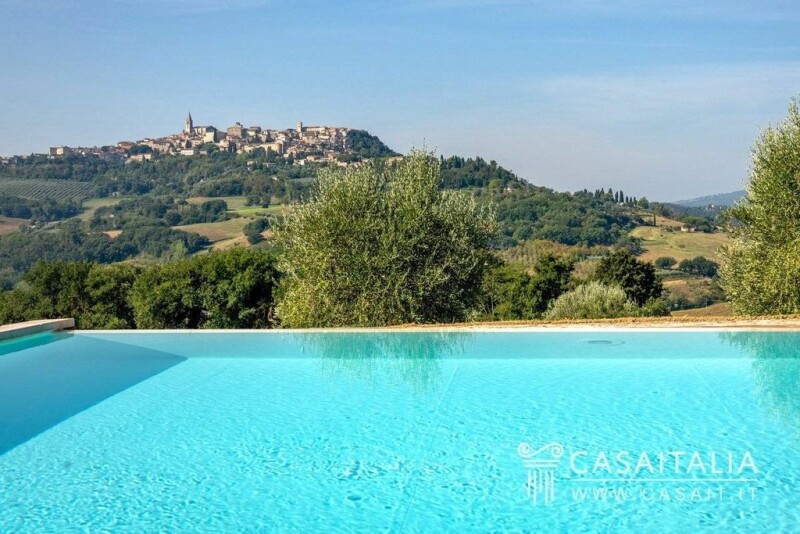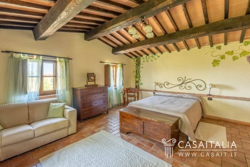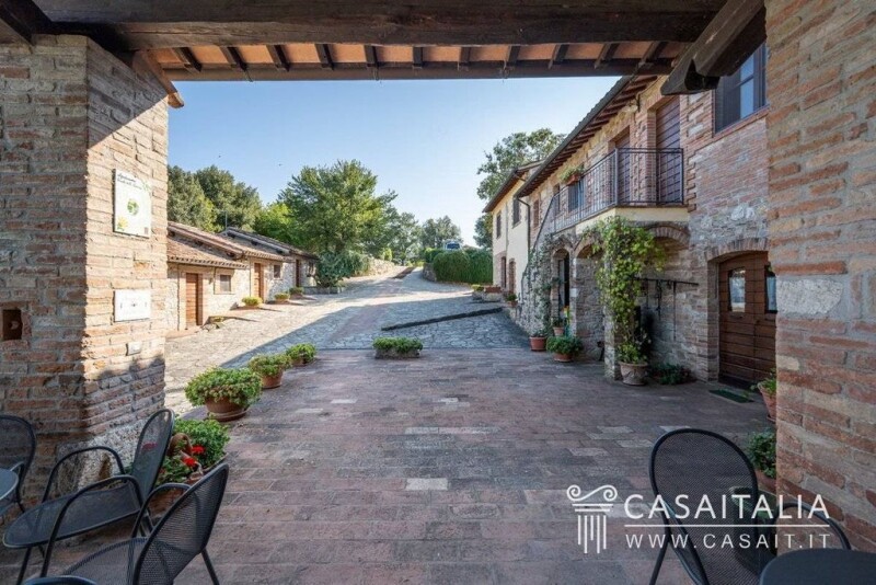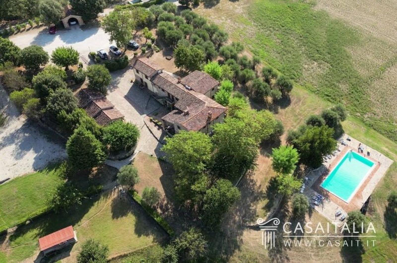 Typical farmhouse used as an agritourism, with 5 flats, a dependance with an additional flat and a wellness centre, in a hilly and panoramic position with a magnificent view of Todi. Total commercial area of approx. 3,052 sqm, with 13 rooms and 20 bathrooms in total, large communal areas, a shed and two large sheds. Private land of over 7 hectares, with garden, swimming pool, small olive grove, woodland and arable land. Geographic position Less than 10 minutes from the historic center of Todi (only 4 km away), in a hilly and panoramic position, Casale vista Todi enjoys a magnificent view of the ancient village and the green Umbrian valley. We are located in the Sagrantino and Grechetto wine area, a short distance from important medieval villages, rich in art and interesting food and wine routes, including Montefalco (25 km) and Bevagna (29 km), reachable in about half an hour. Description of buildings The property, which has a total commercial surface area of 3,052 square metres (plus porticoes of 22 and 44 square metres on the farmhouse and 53 square metres on the wellness centre), is used for agritourism and is composed of the main farmhouse of 528 square metres, divided into 5 independent flats (plus communal areas), a 66 square metre dependance with an additional flat, the wellness centre of 325 square metres, a 33 square metre shed and two large sheds of 1,250 and 850 square metres. External areas The land surrounding the property covers over 7 hectares and includes garden, a small olive grove, arable land and forest. Large panoramic swimming pool of 112 sqm with solarium of 300 sqm. Use and potential uses Casale vista Todi is a beautiful accommodation in a very panoramic position, convenient and barycentric with respect to the most important historical centers of Umbria and is an excellent starting point for day trips throughout the region or to spend a relaxing stay in contact with nature. Thanks to the presence of independent rooms and apartments, the vocation of the property is definitely tourist accommodation, with the possibility of living ua part of it, putting the rest to income.