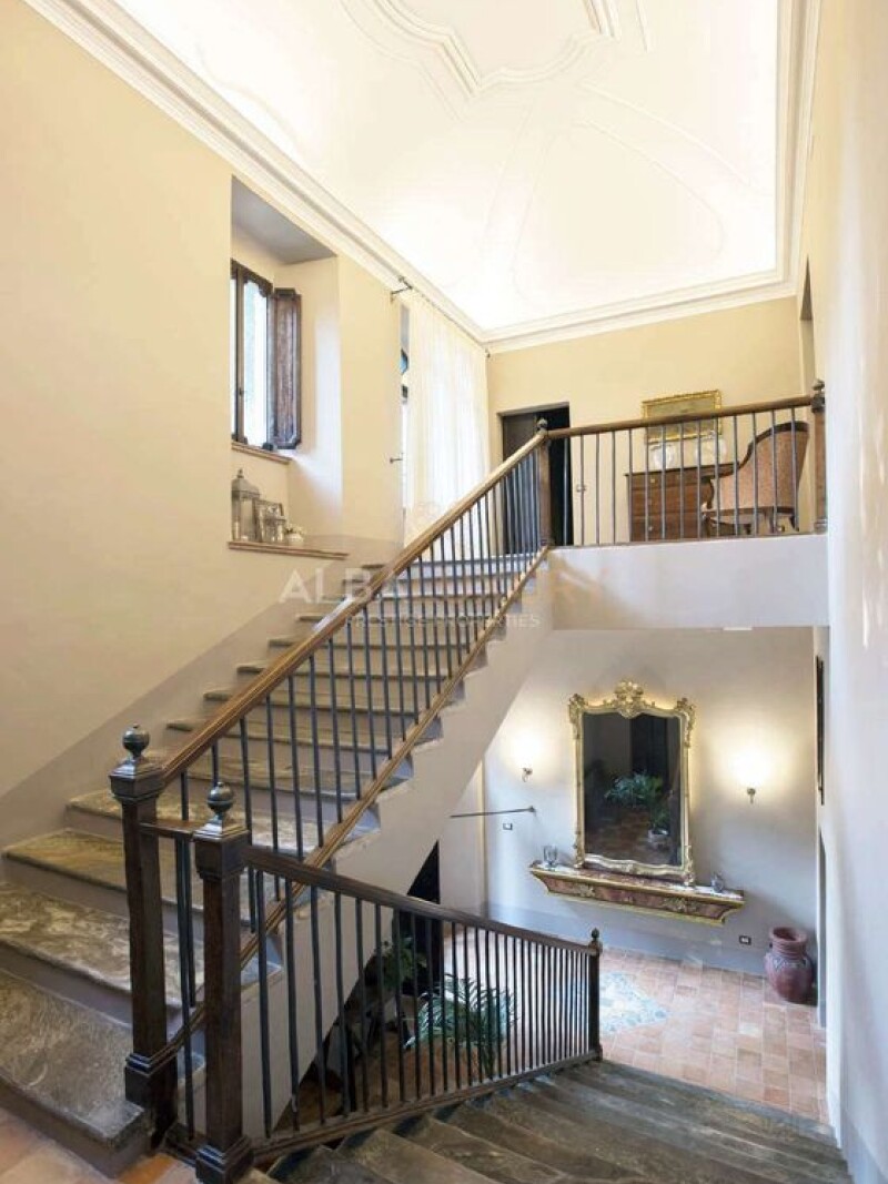 Charming luxury property with large main villa, two annexes, private chapel, gym and swimming pool, surrounded by almost 8000 sqm of lush private grounds. Between 1996 and 2000, it underwent constant renovation and restoration work both externally and internally to bring it back to its former glory, carried out by the skilled hands of local craftsmen. Between 2014 and 2015, the annexe was extended and upgraded with luxury finishes and domotic technology, to bring together the grandeur and atmosphere of the past with all the comforts of the present. The structure is composed as follows: Main Villa, Villa Vedetta, Villa Il granaio, chapel and limonaia, swimming pool and park. VILLA PADRONALE: the ground level is divided into two areas: one half houses two studios, the laundry, the boiler room, the area where water is filtered, three guest bathrooms and some other service areas, while the other half houses service areas, while the other half houses the old cellars. The bomb shelter: The old stables occupy part of the ground floor and are all in one area, which is remarkable for its old, imposing cross-vaulted ceiling, which is still intact: it is a large and versatile space, with the capacity for 200 seated and 400 standing and ideal for hosting meetings, exhibitions, events and private dinners. The first level is located between the ground floor and the main floor and is separated by an area that has been converted into a separate flat with a living room, kitchen, two bedrooms and a bathroom. On the second floor is the main floor, which is made up as follows: two stone lions guard the main entrance that gives access to the large staircase leading to the main floor, which is the living area for the main dwelling. A large 56-square-metre living room with a fireplace and decorated vaulted ceiling is the centrepiece of the living space, with the spacious kitchen with dining area and reading room next to it.From the living room, a corridor leads to the sleeping area consisting of six bedrooms with en-suite bathrooms, a comfortable room used as an ironing room and walk-in wardrobe and a two-room flat with kitchen/living room, bedroom and bathroom.From the same floor, via an internal staircase, it is possible to access the tower: a sort of large covered loggia that was once used by the servants to hang their laundry and has now been transformed into a bright studio with a view of the entire property and its grounds as far as the hills on the horizon. VILLA VEDETTA: Villa Vedetta: 170 sqm in total - 4 + 4 bedrooms The hayloft has two floors and is elegant and comfortable.On the ground floor there is a separate flat with a spacious kitchen/living room with large windows that offer a splendid view of the gardens and the green hills around the property, a bedroom with en-suite bathroom, a living room/bedroom with another bathroom and access to a portico of over 20 sqm.The first floor has been divided into three large bedrooms, all with en-suite bathrooms.Outside there is a small garden that is entirely used by this building, equipped with a barbecue area and outdoor kitchen. VILLA IL GRANAIO: : 202 sq m in total - 5 bedroomsThis separate, functional and elegant building has three floors, with its own garden complete with barbecue area, and is divided as follows: - Ground floor with large kitchen/living room and a double bedroom with bathroom; - First floor with large double bedroom with en-suite bathroom; - First and second floor with two-room flat consisting of kitchen/living room and bathroom and a bedroom with private bathroom on the upper floor. The structure is completed by the chapel (40 square metres in total), the lemon house (40 sqm in total) and a swimming pool. The villa is located in a hilly position near a small village only 3 minutes' drive from San Severino Marche, half an hour from Macerata (26 km) and Camerino (25 km) and only an hour from the sea (Civitanova Marche, 56 km). Le Marche is a concentration of natural wonders, small villages and incredible beaches.