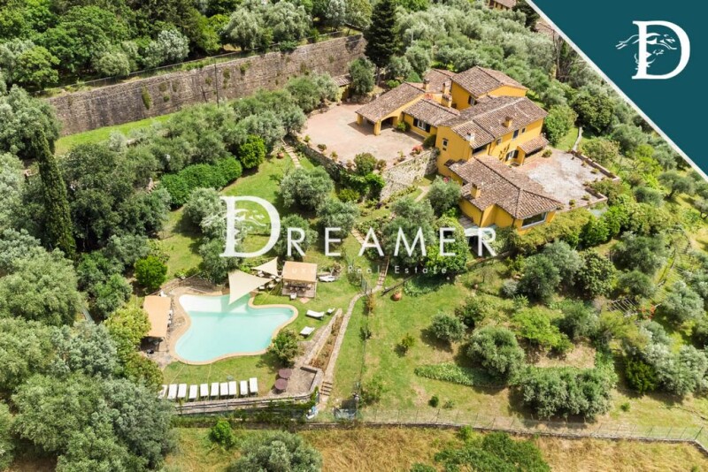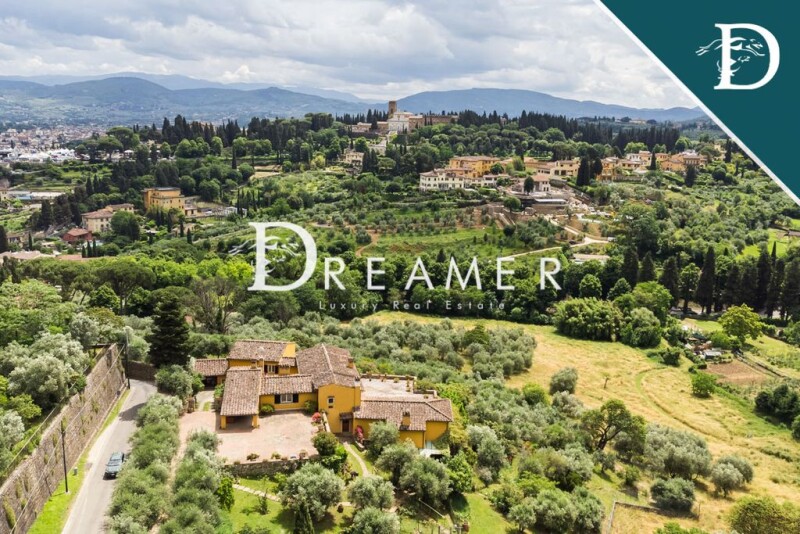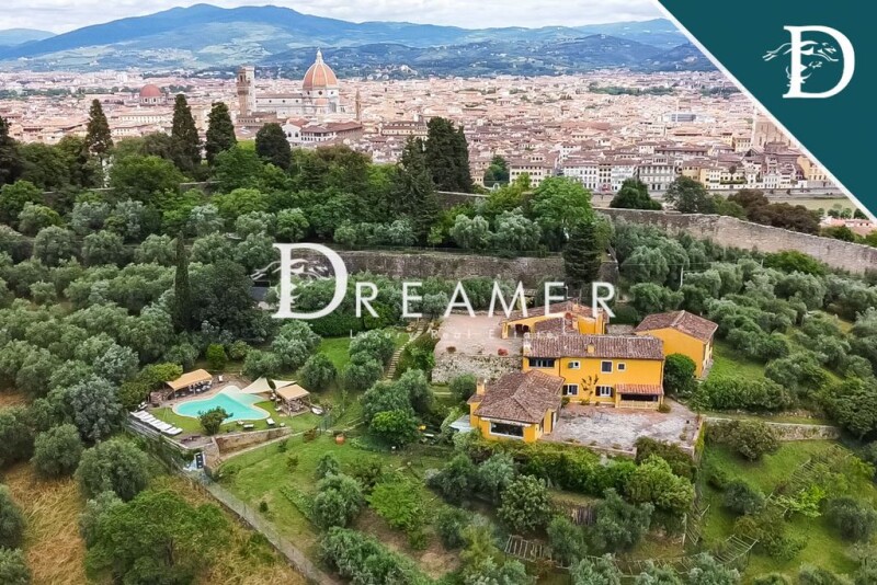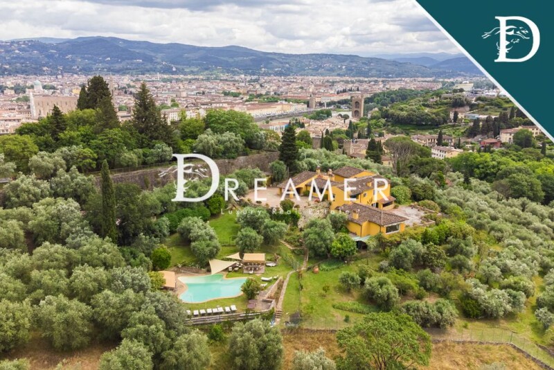 Splendid Villa with swimming pool for sale in the most exclusive area of Florence, adjacent to Piazzale Michelangelo, 5 minutes from the historic center of the city. The property, with a total of 634 sqm on two levels, has 8 bedrooms and 6 bathrooms. The property is composed of an extraordinary hall with large cross vaults which give it a characteristic style; a large window overlooks the city and allows a view of all the monuments of Florence. On the same floor we find the dining room, the spacious kitchen with dining room and the wine cellar. The corridor leads to the sleeping area for guests, where there are 2 bedrooms with bathroom. A splendid staircase leads to the upper floor where there are 5 bedrooms with walk-in closets, 3 of which with ensuite bathrooms, a large study with bathroom and a comfortable wardrobe in the entrance area. The master bedroom also has an exclusive balcony overlooking the surrounding green nature and each room has exceptional brightness thanks to the ideal exposure of the property. On the lower floor there is the Limonaia, which could act as a charming independent annex. The wonderful Villa includes a paved outdoor space of approximately 300 sqm with a delightful porch overlooking the breathtaking panorama overlooking Piazzale Michelangelo and the Abbey of San Miniato al Monte. The luxurious property also includes approximately 1.5 ha of land which houses a swimming pool with solarium area, an olive grove and other fruit trees. The property includes a comfortable garage with direct access to the house, as well as multiple uncovered parking spaces located in the entrance square to the Villa. REF.1375.
