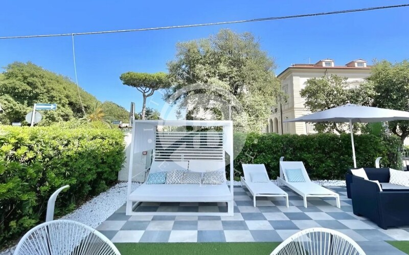 This elegant Liberty-style villa, dating back to the late 19th century and carefully restored, is situated in a prime location on the Riviera Apuana-Versilia, between Forte dei Marmi and the Cinque Terre. Overlooking the sea, it spans four levels with a total area of 1,600 sqm and features 31 spacious and bright rooms, finished with high-quality materials and refined details. The property is surrounded by a 468 sqm garden and boasts a panoramic terrace offering breathtaking views of the coastline, from the islands of the Tuscan Archipelago to Portovenere. Just 50 meters from the beach, the villa enjoys excellent connections along the coast, with a scenic cycling path leading to Forte dei Marmi and a seaside promenade stretching to Viareggio. The nearby pier offers a stunning walk over the water with views of the Apuan Alps and serves as a departure point for boat excursions to the Cinque Terre, Capraia, and other enchanting Ligurian destinations. The interiors combine elegance with modern comfort, featuring a sophisticated blend of materials such as marble, wood, and stone, preserving the historic charm of the residence. On the top floor, a 50 sqm penthouse apartment with a private terrace provides a 360° view of the sea and mountains. This stretch of coastline is truly unique: natural rock formations extending into the sea create a gently sloping seabed, making it ideal for families with children while also protecting the beach from erosion. The Liberty-style architecture, prestigious location, and exclusive setting make this villa a one-of-a-kind property—an exceptional investment opportunity in one of Tuscany’s most captivating areas. . The location is perfectly situated for easy access to various captivating destinations. Forte dei Marmi is just 10 minutes away, Viareggio is 20 minutes, and the marble quarries of the Apuan Alps are only 15 minutes away. The Cinque Terre can be reached in about 30 minutes. In a day, you can visit Lucca, Pisa, Florence, and Genoa, all within a short drive. Pisa International Airport is approximately 45 minutes away. 50 meters from the sea 6 km from Forte dei Marmi 48 km from Lucca 120 km from Florence 120 km from Genoa International Airport.