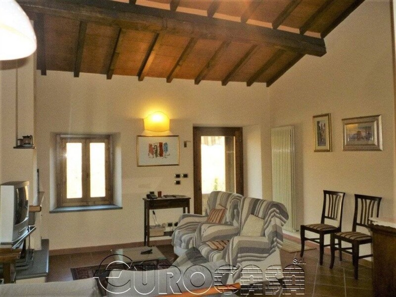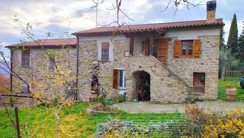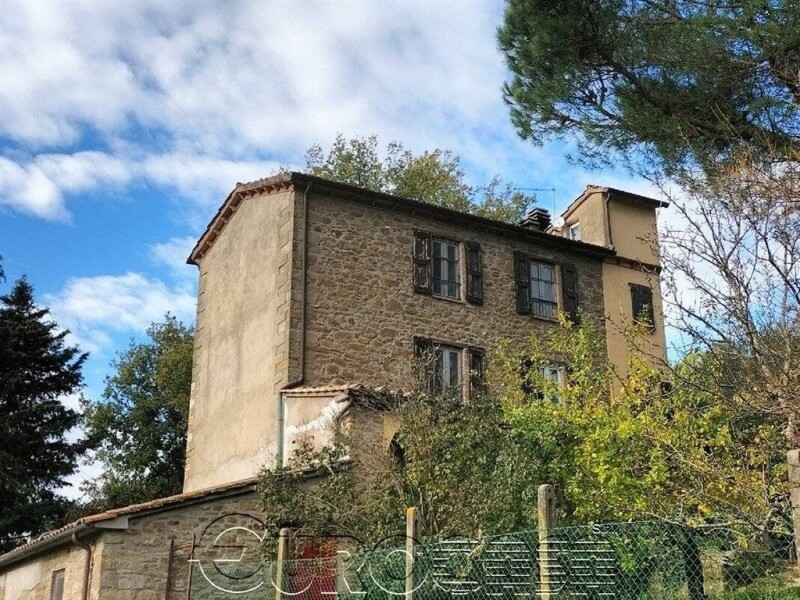 In the beautiful Niccone Valley near Preggio, on sale 2 houses of about 460 square meters. immersed in the green Umbrian countryside surrounded by ancient olive groves, arable land and forests for about 50 ha of complex terrain. The main house of 148 square meters of living space + 55 sqm. of funds it consists of: kitchen, bedroom, bathroom and living room with panoramic window on the ground floor; living room, kitchen, bedroom and bathroom on the 1st floor; 2 bedrooms, bathroom and utility room on the 2nd floor. The second house of about 77 square meters. livable + 180 m. bottom instead is composed of: living room with fireplace, kitchen, 2 bedrooms, one with dressing room and bathroom. These rooms are all air conditioned. The funds of this house can be transformed into a dwelling. The sales for the entire farm is EURO 1,300,000, however, you can only buy two houses with about 4.5 ha of land and the surrounding olive groves at EURO 970,000. The property is suitable for a farm or to a receptive activity.