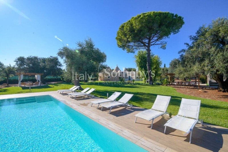 With its white and stony architecture, this property is a precious and suggestive place to immerse oneself in the history and tradition of Apulia. The property enjoys a privileged position, halfway between the Ionian Sea and the Adriatic. This allows you to reach both the marina of Brindisi and the natural oasis of Torre Guaceto, as well as the enchanting Ionian beaches, in about half an hour. The property consists of two buildings a few meters apart, both of which are single-storey. In 2022, the complex of trulli underwent a complete and meticulous renovation. The trullo structure houses the dining room at the entrance, the true heart of the dwelling, which connects all the spaces: a small kitchenette with a kitchen, three double bedrooms with en suite bathrooms with showers, and an alcove that can be used as a relaxation area and, if necessary, with two additional beds. The classic-style villa, which is located on the opposite side and has an independent entrance, accommodates four bedrooms, two bathrooms with showers, a kitchen, and a spacious living room. The property is completed by an external laundry room. The rectangular-shaped pool, with an area of 40 square meters, and the vast park with private parking, offer relaxation and comfort. There is also an outdoor gazebo with a barbecue, perfect for pleasant moments outdoors.