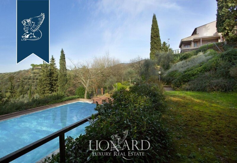 Short distance from Florence this luxury villa for sale with panoramic views of the city. Built in the 70s, the villa has a surface area of 550 m2 and has 130 m2 of outbuildings including an annex to the service staff, a gym, a laundry room, and a nightclub. The master suite has a beautiful fireplace and a large glass door with a private balcony. The property for sale has also a greenhouse, a cellar and an outbuilding of 90 m2. A lush garden of about 6,000 m2 surrounds the luxury home and hosts a beautiful private pool. The agricultural land of the villa has an area of 2 hectares and includes approximately 200 olive trees, an orchard and a comfortable BBQ area with wood oven. REF. 0460.