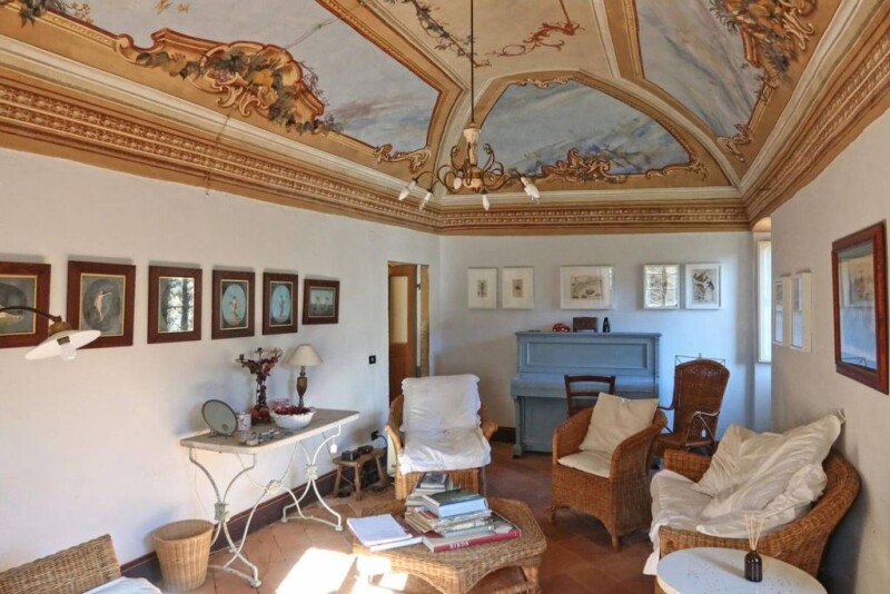 Beautiful country house which was formerly the summer residence of the Diocese of Pontremoli, dated 1826, with cellars and undercroft dating back to the 1580s. The house is a former mill, in an elevated position overlooking fields and the River Gordana. It has adjoining outbuildings including the old village school. The Casa Principale has 5 double bedrooms and 3 bathrooms and a guest toilet, and a large number of reception rooms, some with historic frescoed ceilings. The adjoining farm cottage, Casa Colonica, has 4 bedrooms, 2 bathrooms, an eat-in kitchen and double height living room. The farmhouse and the farm cottage share a huge terrace, overlooking the valley and the old bridge over the River Gordana, and there are many fascinating and beautiful outdoor spaces, perfect for relaxation, barbecues, summer dinners etc. The old school has been refurbished as an independent apartment with a kitchen and bathroom and a beautiful lofty living space. The farmhouse has several beautiful stone barns, not yet converted, but offering many interesting possibilities for further development. The property is ideal as a family home or would suit development for some commercial activity, workshops, courses, etc. The property ncludes a swimming pool, a triangular shaped garden with cypress trees and a statue of an angel, a cider apple orchard, a covered loggia, a dining space with kiwi pergola, grazing meadows and ample parking. Central heating (wood boiler).