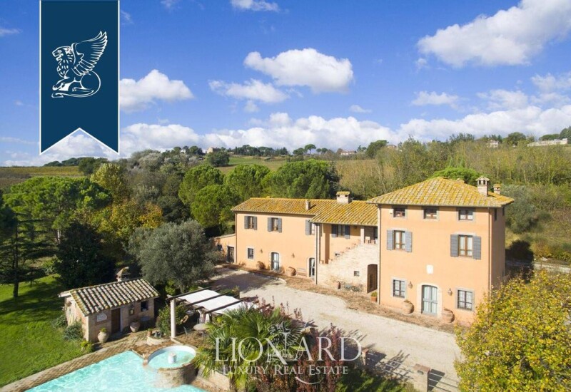 This splendid villa for sale is located in the heart of Umbria, near Perugia and the Wine Route, in Umbria, a region which is home to some of the best known works of art by Giotto, Cimabue, and Benozzo Gozzoli. The farmhouse, currently used as an accommodation, originally belonged to the Knights of Malta and boasts an illustrious past. The internal surface is approximately 550 sq m divided between the main farmhouse, which houses two stunning apartments for a total of six bedrooms and eight bathrooms, and a small 65 sq m outbuilding. The rooms and interiors are characterized by materials such as stones and exposed beams, terracotta floors and precious tapestries. The estate is entirely surrounded by a planted garden of about 5.000 sq m with a splendid swimming pool that looks towards the valley and the cities of Assisi and Torgiano. The property is close to the major centers of interest in Umbria such as Perugia, Assisi, Spoleto and Spello. Ref.: 1559.