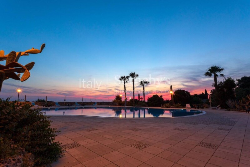Enveloped in the Mediterranean scrubland, a few steps from the sea of Gallipoli, lies a suggestive farmhouse with a restaurant, pool, solarium, and tennis court. This historic and prestigious property, located in the most charming Puglia, includes two country houses and is characterized by spacious open spaces for relaxation and entertainment, including a large pool and a tennis court. The 8 hectare park, with centuries-old olive trees and palms, offers suggestive scenarios and well-kept spaces. The structure, which has undergone careful restoration, combines the seventeenth-century soul with modern comfort. The main body of the country house extends over two levels: on the ground floor, there is a reception hall, a bar area, and a professional kitchen. Upstairs, instead, the bedrooms with services, in addition to a panoramic terrace. An elegant pavilion can accommodate breakfasts, lunches, and dinners outdoors. The second country house houses other rooms, for a total of 44, on an area of 2700 square meters. It is interesting to consider that the premises on the ground floor, currently used as a laundry and storage room, could be transformed into an additional 8 rooms with bathrooms. The heart of the property is the splendid pool area, surrounded by the solarium and nature, which offers privacy and tranquility. The park, with jogging paths, allows you to explore the beauty of Salento, while a rural stone building, transformed into a bar, and a gazebo complete the atmosphere for moments of leisure and private events.