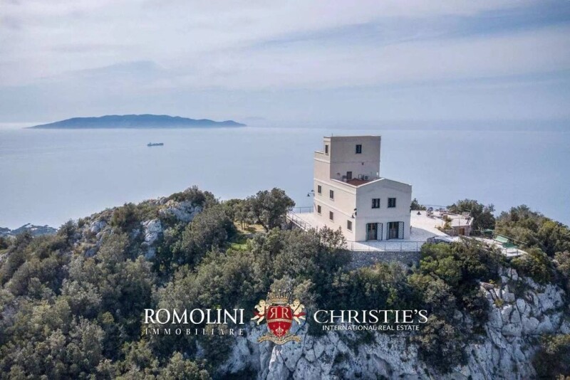 In a very panoramic position on the Argentario promontory, not far from Porto Santo Stefano, spectaclar former lighthouse converted into a modern luxury villa. This Tuscan coast property, 300 sqm in total, houses nowadays 5 bedrooms and is surrounded by 2.2 hectares of land, fully landscaped as a garden where one could also build a helipad for a much quicker and convenient access. The retired position of the villa, other than offering a breathtaking view over the sea and the islands of the Tuscan Archipelago, also makes it perfect both as a private residence and as a rental property. DESCRIPTION OF THE BUILDINGS The tower (300 sqm – 3,228 sqft, 5 bedrooms and 5 bathrooms) is laid over three floors. Entering on the ground floor there is an ample living area with an open-plan kitchen and a bathroom. Via a marble staircase with iron railings, one reaches the sleeping area on the first floor where there are four bedrooms and three bathrooms. Going further up, one reaches the upper floor of the tower with the master bedroom, its en-suite bathroom and a nice panoramic terrace on the roof. There is then a small outbuilding outside and it is also possible to build a convenient helipad in the property, which would make reaching the house even easier. HISTORY, STATE AND FINISHES The lighthouse was built in the second half of the 19th century by the Regia Marina (the Italian Royal Navy) as a control point along the coast of Tuscany. A few years later, the building was also fitted with a radio and telegraph station for quicker communication with the mainland. During World War II, the complex was converted into a coastal artillery position, with cannons and anti-aircraft guns. In 1943 the tower was already obsolete and its functions were quickly assigned to more modern buildings. In the same year, considering how the war was going for Italy, the lighthouse was definitely written off by the navy and abandoned. After many years, on 28 April 1959, the Italian government (at that point owner of the building) auctioned off the lighthouse which was then bought by a private citizen with the idea of converting it into a luxury house. The project was never fulfilled and the building was restored only in 2010 – 2011. Over 5 years, the tower was fully rebuilt in reinforced concrete following the modern anti-seismic criteria. The outer walls have been filled with stone, which grant excellent thermal insulation, and the façades have been plastered as they were in the original building. The old road leading to the lighthouse was very narrow and inconvenient for modern vehicles, so the owners decided to enlarge and improve so that cars can now more easily pass through. EXTERIORS The tower is located on the summit of a mountain, roughly 371 m above sea level. All around the building, there are 2.2 hectares of land, entirely covered in gardens and paved terraces. In a very panoramic spot, one can find a beautiful overlook offering an incredible view over the sea and Giglio Island towards the horizon. The paved terrace surrounding the villa is also ideal for al fresco dining in the pleasant summer climate of Argentario. CLOSEST CITIES AND TOWN†S Porto Santo Stefano (9km; 15’), Orbetello (20km; 25’), Porto Ercole (21km; 30’), Grosseto (55km; 1h), Saturnia (67km; 1h 20’), Castiglione della Pescaia (75km; 1h 20’), Follonica (102km; 1h 30’), Orvieto (123km; 2h 20’), Siena (128km; 1h 50’), Rome (162km; 2h 30’), Florence (196km; 2h 45’) CLOSEST AIRPORTS Grosseto Baccarini (56km; 1h), Roma Fiumicino (154km; 2h), Roma Ciampino (173km; 2h 15’), Firenze Vespucci (209km; 2h 40’), Pisa Galilei (210km; 2h 30’), Perugia San Francesco (229km; 3h).