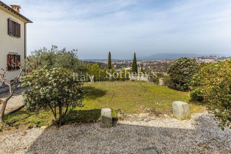 A few km from the city center, located on a hill with a wonderful view of Arezzo, is this wonderful seventeenth-century villa, expertly restored by a famous Milanese architect who has been able to enhance and preserve the historical details, inserting functional and luxurious utilities. The villa is surrounded by a garden of about 4000sqm where one can relax and enjoy nature and the hills where there are olive groves and vineyards that have enchanted Piero della Francesca. The villa, a combination of elegance and simplicity, is spread over three floors for a total of about 790sqm; on the ground floor there is the cellar with brick vaults, stone walls and restored ancient doors; and an ancient press of the year 600; on the same floor we find the tasting room, a living room with a fireplace and stereo surround system, a pool room and a sauna with shower and a bathroom. On the first floor, which is accessed both from the inside and outside, there are the living area, the kitchen, a bedroom, a bathroom, a study with a Sicilian polychrome marble decorated bookcase and an original fireplace from the fifteenth century; on the same floor one also finds the dining room with a ceiling with painted panels of the nineteenth century and the large and bright living room which leads to a terrace with a wonderful view of the city. Going upstairs there are 6 bedrooms, 4 of which with en suite bathrooms, and a further bathroom; all rooms have built-in wardrobes or wooden walk-in closets. The bathroom of the main bedroom is in Carrara marble and the sink is made from an ancient "fontino" (small water collection tank for watering the gardens) from the seventeenth century. Inside the villa there are elements of furniture and decoration worthy of note, with a high historical-artistic value, in addition to the architectural elements of the building itself, such as the arches, the niches, the balustrades, the fireplaces, terracotta and wooden floors, the stone stairs, the majolica of Faenza, the blown glass, some fragments of ancient capitals; every corner tells a piece of history and makes one dream back to past times. It is also possible to build a swimming pool (photo rendering). The property is completed by a large garage of 69sqm, a warehouse of 39sqm and another shed of 36sqm.