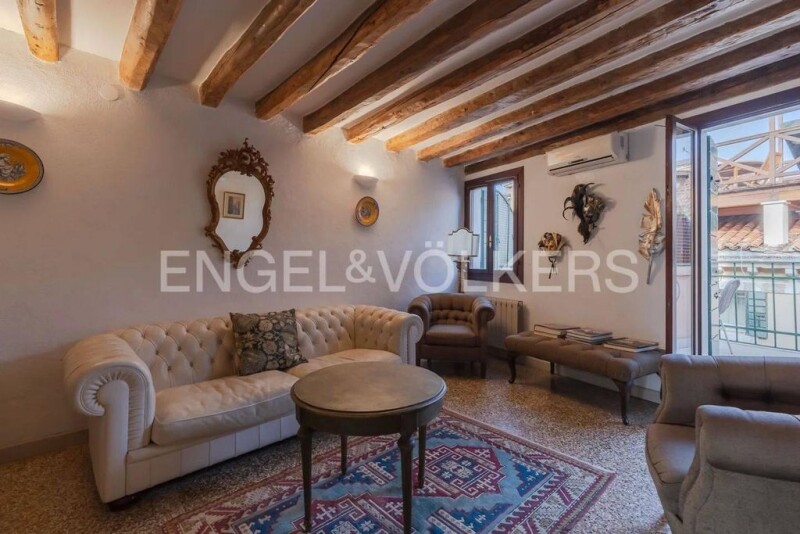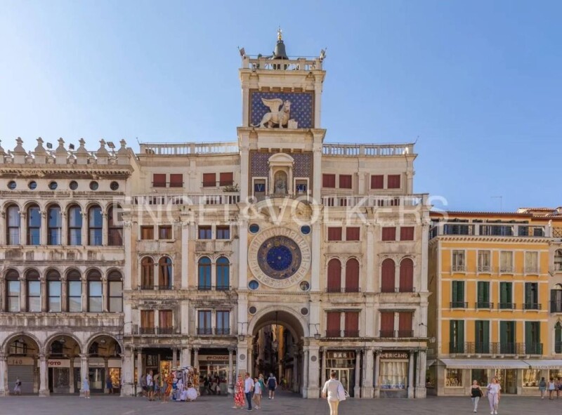 We walk along the Mercerie, the nucleus of the commercial activity of the lagoon city since the very early days of the Republic of Venice, when precious goods arriving in the port from distant markets were sold there. Along the route of the Mercerie and in the immediate surroundings, the ground floor on both sides of all the buildings is occupied almost exclusively by shops that follow one another continuously. A few meters away now separate us from the beautiful and historic Clock Tower, built between 1496 and 1499 by the architect Mauro Codussi; we turn right into a street sheltered from tourist flows and we find the entrance to the apartment, where there is a beautiful helical staircase. We go up the stairs and cross the threshold; We are welcomed by an elegant hallway enriched by the Venetian terrazzo floor which leads us to the very bright living area, connected to the kitchen, and to a sunny and spacious terrace with a splendid view: our gaze caresses the Clock Tower and the domes of the basilica of San Marco. Two welcoming bedrooms, one with an en suite bathroom, complete the apartment, equipped with modern style and finishes, exposed beams, refined furnishings and open views over the rooftops. Overall, these characteristics make the property a privileged solution for comfort and convenience, right in the heart of Venice. San Marco is the heart of the city of Venice, the best known and most prestigious district, from every point you are within walking distance both from Piazza San Marco and from the Teatro della Fenice. This area is also very well served by all the Vaporetto lines, and by the gondola ferry, it is also possible to reach any corner of Venice in less than ten minutes. The apartment is located in the heart of Venice, close to Piazza San Marco and a 5 minute walk from the Rialto Bridge. You can enjoy all the services of the city center: proximity to public transport, shops of all kinds, museums (Palazzo Ducale, Basilica of San Marco, Museo Correr, Arsenale, Biennale, just to name the closest ones).--a4ab45a333027d68b277bd524dc31ffe!.