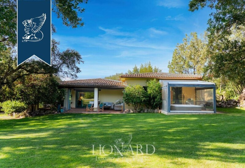 Splendid villa for sale in the hills just above the two exclusive places in Porto Cervo and San Pantaleo, in the green lung of the Costa Smeralda. In the two hectares of private park, the embrace of nature is expressed in the richness of plants and flowers that populate this luxuriant green oasis, between olive plants, myrtle, sauce, holm oaks and secular oaks, a large orchard, greenhouses and vegetable gardens, beyond to a small river. The numerous external areas equipped for the most absolute relaxation include a separate area exclusively dedicated to the swimming pool and solarium, a whirlpool and splendid verandated patios for lunches and dinners in conviviality. The construction is presented with the most typical stretches of local architecture, partly covered in local stone, all developed on a single level for an internal surface of 220 square meters. Five rooms and three bathrooms are flanked by the Living area, with a large lounge characterized by large windows with a view of the well -kept exterior park, separate dining room and well -equipped kitchen. Some tools of the tools and a large garage for five cars complete this fabulous property for sale in Sardinia. Ref. 10835.