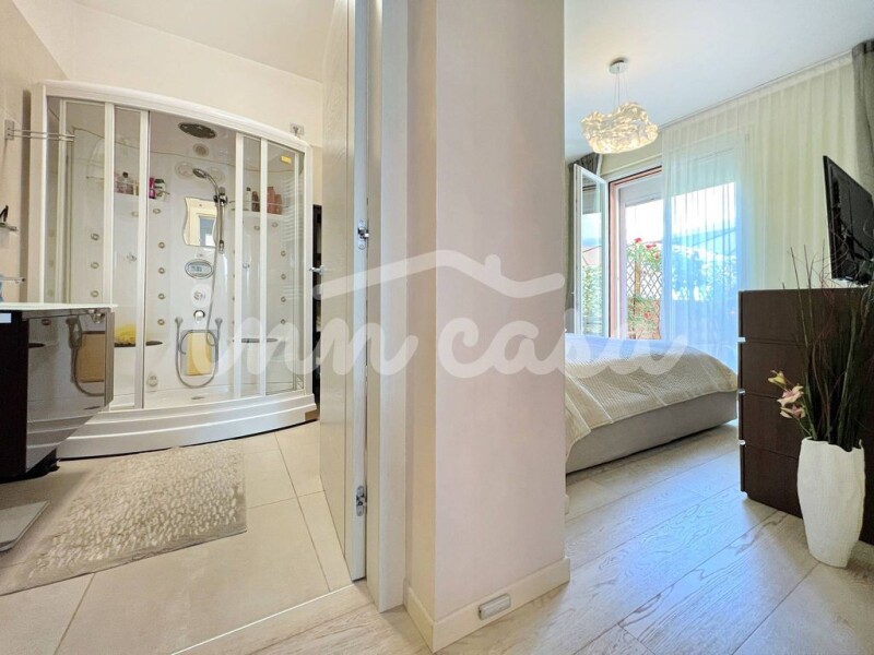 Marina Centro, an exclusive area of Rimini par excellence, in an elegant building consisting of only five units, we offer the sale of a property on the ground floor with a private garden on two sides. Elegant and exclusive, the apartment is in excellent condition and has been created with refined materials, finishes and details to obtain maximum comfort and livability of the internal and external spaces. The living room with open kitchen enjoys a double view of the private garden, the two double bedrooms are served by double bathrooms, one of which has a double multifunction shower cabin and walk-in closet. From the private garden you can access the garage of over 40 square meters via a comfortable staircase. The rooms are completed by underfloor heating, air conditioning with heat pump, new fixtures with electric shutters and anti-intrusion gates, video intercom, alarm system with internal and external cameras, automatic irrigation. The apartment is sold fully furnished, Miele and Whirlpool appliances, refined accessories and furniture. The asking price is Euro 539,000. Ref.V02664.