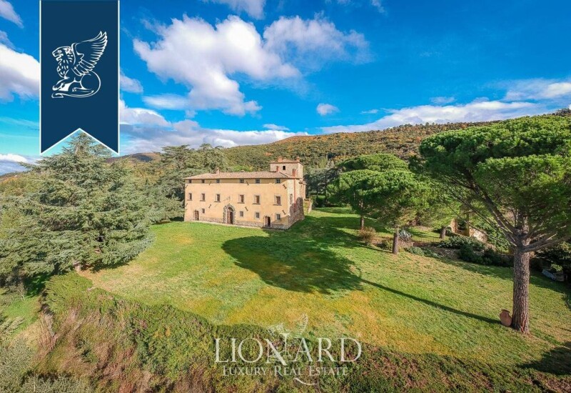 This wonderful castle is for sale in the heart of Tuscany, in the province of Arezzo. This estate boasts a residential surface measuring over 3,000 sqm, divided into 46 rooms. The grounds are home to another 2,500 sqm of annexes and two buildings in ruins that could be renovated to add another 500 sqm. This majestic castle includes an enchanting tower, a courtyard with a well and a portico, and a majestic staircase leading to the piano nobile thanks to two opposite flights. This estate also includes almost 18 hectares of grounds with a park that is partially in an English style and includes a wonderful garden, a five-hectare olive grove, and a big forest. Ref.0757.