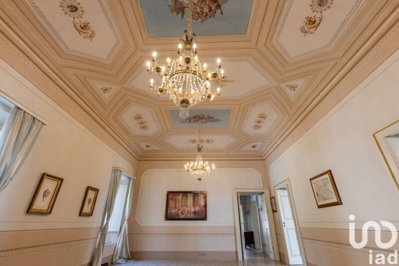 VILLA BONAPARTE Majestic neoclassical villa commissioned by Napoleon's brother, in 1823 to the young architect Ireneo Aleandri by the Prince of Montfort Girolamo Bonaparte. The villa retains intact all the charm and atmosphere of that period; It is made up of a central body on 4 floors where the main floor stands out with immense frescoed halls; the ground floor, with cross vaults, is dedicated to kitchens, warehouses and service areas ideal for catering the main entrance, from the terraced gardens in front of the facade overlooking the sea, passing through a large loggia that leads to an imposing staircase that connects all the floors; on the mezzanine floor there are the services and a large courtyard covered by a fine wrought iron veranda; the main floor with its 4 large frescoed halls, which reach a total height of 8 metres, splendidly restored and with bright windows and balconies overlooking the sea. The top floor can be dedicated to rooms and suites A second adjacent building “orangerie” is a charming structure ideal for multiple uses, spa, wellness center or annex The property includes 2 hectares of parkland, partly with a garden and partly with an olive grove and woodland, and two structurally restored and currently unused towers. The entire property dominates the town of Porto San Giorgio, overlooking the center and sea view Contact us for more information!.
