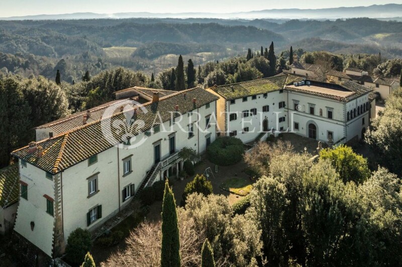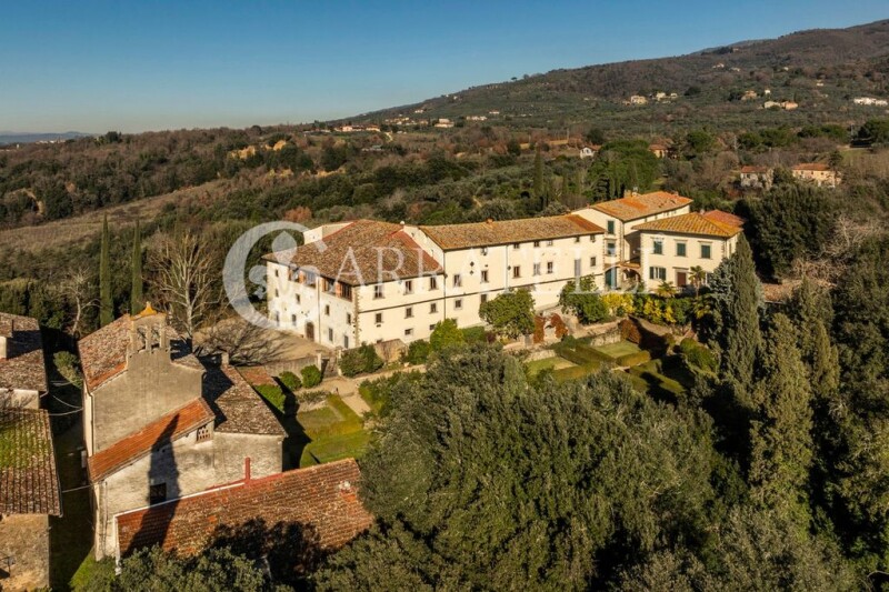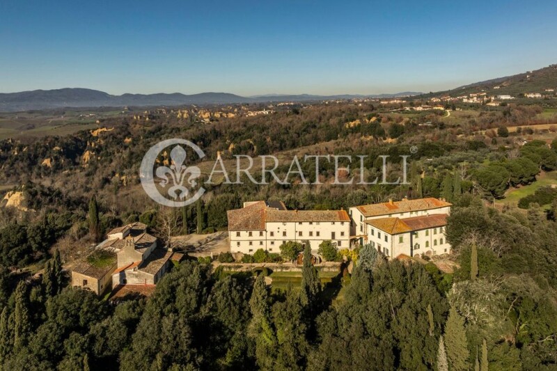 Splendid Tuscan estate characterized by ancient hamlet with perfectly restored period villa and farmhouse totaling 25000 sq. m., immersed in 434 hectares of property, in a dominant position along a road of Etruscan origin in the typical Balze region, among the sinuous hills of Chianti Valdarno, near Florence and Arezzo. Description The core of the estate consists of 3 prestigious main bodies connected internally by basements, and externally by courtyards and hallways, which also delimit the two gardens. All of them have undergone a careful restoration that has preserved their characteristic original architecture: the ancient Borgo, a historic Ghibelline fortification that later underwent major extensions and renovations, with its 18th-century chapel; the elegant period Villa, located at the center of the property and also divided into 3 bodies; and the adjacent Agriturismo, created from the renovation of a large 20th-century farmhouse. The three buildings are flanked by 11 farms and farmhouses, with excellent recovery possibilities, for a total of 15,000 square meters covered. The rooms are equipped with every modern comfort and benefit from enchanting panoramic views of the typically Tuscan countryside. 150 meters from the villa is the farmhouse, expertly restored and divided into rooms and apartments of various sizes with total capacity for up to 52 people. Outdoor Spaces The farm, perfectly set in the rich vegetation of the typically Tuscan hills among lush holm oak woods and crops of all kinds, covers 430 ha including 15 ha of vineyard, 40 ha of olive grove, 130 ha of arable land and 70 ha of woodland divided into different hunting areas. The vineyards are planted with Chianti DOCG: Sangiovese, Canaiolo Nero, Trebbiano and Malvasia. The olive groves include 7,000 trees, on hilly terrain ideal for the Leccino, Moraiolo and Frantoio cultivars. There are two gardens on the property, a larger and older one and a lovely Italian-style park of 19th-century layout, with a splendid fountain on the front of the Villa. The farmhouse hosts large equipped green spaces and a swimming pool with a splendid view of the valley below. Condition and finishes The villa was carefully restored in the 1700s and further extensions and embellishments, such as coffered ceilings and frescoes, added in the 1800s, bringing out the sober and elegant style of the ancient noble residence. The farmhouse has been furnished in typical Tuscan style with terracotta floors, handmade furniture and wrought iron accessories, preserving a sense of tradition while offering every comfort, creating a warm and welcoming environment. Potential uses The historic villa with its large indoor and outdoor spaces is the ideal location for holding receptions and ceremonies, as well as meetings and conferences. The farmhouse is perfectly established. Location In the heart of Chianti Valdarno a few minutes drive from the main services and close to the main Tuscan cities.