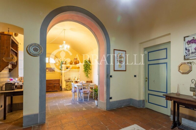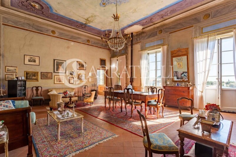 In Lucchesia historical villa of about 1400 square meters. with outbuilding surrounded by its private park of 3000 square meters property of great charm belonged to important noble families. Perfect combination of 'powerful architecture typical of the nineteenth century and neoclassical language with formal and traditional details of great value. Location Lucca is particularly pleasant and characterized by rolling hills planted with olive trees, well connected to Lucca and the main roads to the beaches of Versilia is strategically placed to reach the airport of Pisa and the Tuscan cities of art. You can approach food and wine tours to discover ancient wineries and food from the genuine flavor and traditional. Description Through the private gate you reach the white pebbled courtyard facing the villa. On the ground floor we are greeted by a magnificent columned entrance of considerable artistic value that leads to various service rooms, the kitchen, the tavern and the cellar. We can appreciate an apartment entirely frescoed and, on the main floor, through a wide staircase in Matraia stone with cast iron railing a second apartment. The noble atmosphere of the property is characterized by large rooms for the reception of guests, sumptuous living rooms and bright dining area. In the sleeping area you can appreciate eleven large double bedrooms with closet area and seven bathrooms. From the magnificent terrace and the large balcony you can admire the well-maintained outdoor space as well as the surrounding countryside. Belong to the villa an old stable and a wagon shed for a total of about 180 square meters to be used for guests or spa. State and finishes The property is in good condition both internally and externally but it is necessary to check the systems. The large halls are characterized by frescoed ceilings as the imposing central staircase characterized by country scenes very sugge and beautiful. The floors are in ancient terracotta, precious stone portals as the ancient fireplaces characterize the wide spaces. In particular the apartment on the top floor and the annexe are to be restored. Outdoor spaces The park of about 3000 square meters. is completely fenced and planted with fruit trees, mature trees, oaks and palms. You can put a wonderful panoramic swimming pool inside the property. Potential use Perfect property for a large family who wants to live in the countryside but not far from all services. The transformation into a boutique hotel is possible and very interesting for location and available space.