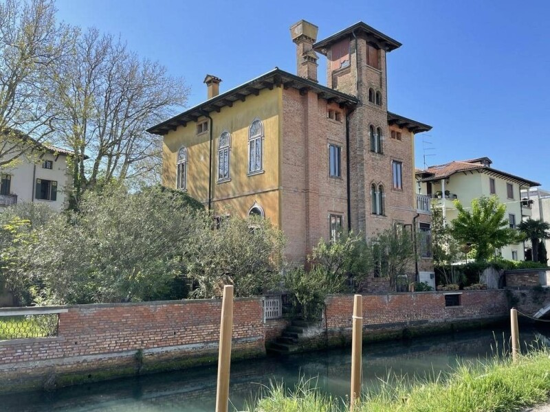 Prestigious early 1900s villa for sale with garden and private water bank, to be restored. 9 and is spread over 3 floors above ground and a basement, the living area measures approximately 266 square meters. Pleasant garden that runs along the canal of approximately 638 square meters. with water bank and water space to keep a boat owned. The building has a square plan. The roof of the building is plastered on three sides, brick on one side. in the base where a staircase from which an external staircase leads to the mezzanine. An external staircase with wrought iron parapet with leaf decoration leads to a landing whose parapet is in stone with Byzantine style decorations. it has architraved windows. On the first and second floors the windows are round arched; There are also mullioned windows with a column connection with a capital in the openings and a terrace with a stone balustrade with small columns with a capital. The third floor is characterized by small mullioned windows, with a brick tile arch frame. The attic is decorated with flowers and shelves with wooden moldings. On the brick facade there is a smaller turret with mullioned windows. view.--dc3e0d2e5c40389f8e591f46238ab27a!.