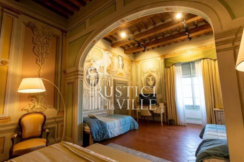 Luxury historic villa for sale in excellent maintenance and conservation conditions located a few km from the sea, near the art cities of Pisa and Lucca. The luxury property is positioned in an excellent living and climatic context along an important communication route already in the 16th century where a series of villas of considerable importance developed, often used as summer residences of noble families including ours which is currently used for ceremonies , parties, important occasions and luxury relais. The villa, initially a country farmhouse used as a farm, built as early as the 16th century, was restored and embellished with drawings and decorations, enlarged and raised by three floors in addition to the roof terrace with the clock (as it exists today) at the end of the 1700s. The grandeur of the villa and the facade can be seen from the first glimpse, the villa in fact has an almost square plan of approximately 450 m2. on the floor and the main facade is surrounded by 19 windows and two French windows, externally the long driveway with the Italian garden also balances the whole. Internally the property served by a lift is made up as a whole of 4 main rooms of over 80 m2. which are repeated on each floor with the suggestive suite room on level 3 of the former granary with the ceiling showing the mighty exposed trusses, 4 further rooms on the ground and first floors, two kitchens, one of which is very large and professional, 8 bedrooms, 15 bathrooms and various ancillary rooms complete the internal part. The external part, in addition to the Italian garden mentioned above, consists of a paved area with gazebos and at the back and a green part for over 6000 square meters in total. The restoration, completed after about 20 years, brought to light massive Doric columns and frescoes by important painters of that period, the most representative scenes are scenes of daily life, wild landscapes and elements taken from the iconographic finds of the so-called ruinism. Luxury solution suitable for those looking for properties ready for both private and commercial use. For further information and price 2,900,000 negotiable.