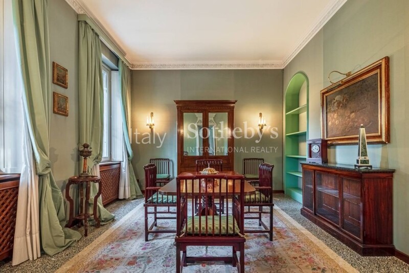 This property, just a short distance from the historic center of the Municipality of Treviglio, is distinguished by its Liberty style, which contributes to its charm and elegance. The villa is arranged across two main levels, in addition to the attic and the basement. By passing through the external colonnade, you enter the welcoming foyer, where the stone staircase leading to the first floor is the focal point. On the ground floor, the layout includes the living area with the kitchen, a dining space, a sitting room, and a study. On the first floor, the sleeping quarters feature two master bedrooms with an adjoining bathroom, two double bedrooms, and an additional service room. The top floor offers an open-space attic, while the basement hosts a characteristic tavern with stone vaulted ceilings, along with a cellar and a laundry area. The villa is surrounded by a landscaped garden, which also includes a triple garage and a practical storage room for maintenance tools. This property has been completely renovated, preserving the authenticity of the materials, thanks to the skilled craftsmanship of artisans specializing in the restoration of Liberty-style villas.