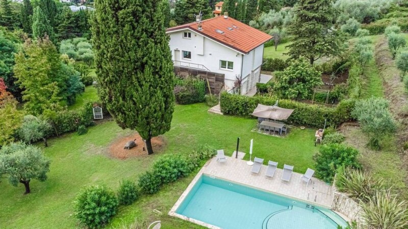 ITBB1842 - SPLENDID CONTEMPORARY VILLA with POOL and TENNIS COURT, a true OASIS OF PEACE KISSED BY THE SUN. Nestled in a DOMINANT POSITION on the first hill a few kilometers from Pietrasanta, Camaiore and Viareggio, it is the ideal residence for those who love to train and enjoy RELAXATION surrounded by GREEN. In the LUSH fenced GARDEN, partly terraced of approximately 5,000 m2, with lawns bordered by hedges, planted with cypresses, olive trees and fruit trees, we discover the elegant SWIMMING POOL with WATERFALL and WHIRLPOOL, SOLARIUM, GRASS TENNIS COURT, BBQ AREA in stone with large brazier and kitchen, PERGOLAS, FITNESS and RELAXATION AREAS with MACHINES for outdoor training, FINNISH SAUNA, HYDROMASSAGE TUBS, OUTDOOR SHOWERS, dressing room, ping pong table, TWO 20m2 GARAGES and large parking areas with access from AUTOMATIC GATES. The colors of the STONE, the WOOD of the privacy panels, the strength of the CONCRETE pillars, the STEEL of the railings, the LARGE GLASS WINDOWS that frame the surrounding NATURE: to build this house, designed in the late 1960s and completely renovated in 2012, QUALITY MATERIALS and a DESIGN were used which make it MODERN, FUNCTIONAL AND ESSENTIAL. The property currently consists of THREE APARTMENTS for a total of 310 m2 with ACCESS, GREEN AREAS AND INDEPENDENT PARKING. The external staircase leads to the first apartment of 220 m2 which is spread over two levels: MAGNIFICENT COVERED PANORAMIC TERRACE of 40 m2, LARGE LIVING ROOM with FOCUS FIREPLACE suspended and rotating at 360°, VIEW KITCHEN, TWO DOUBLE BEDROOMS, a SINGLE BEDROOM, bathroom with JACUZZI HYDROMASSAGE TUB, storage room. In the BRIGHT attic floor, we find TWO LARGE ROOMS, one of which has an INFRARED SAUNA cabin and the other with wardrobes and a romantic guest bed, a bathroom with shower and TURKISH BATH, hallway with piano and large closets. On the ground floor we find TWO APARTMENTS each of which WITH PRIVATE GARDEN, LOGGIA, LIVING ROOM WITH OPEN KITCHEN, BEDROOM/STUDY, DOUBLE BEDROOM AND BATHROOM WITH SHOWER. Remote SURVEILLANCE SYSTEM, two PHOTOVOLTAIC SYSTEMS for the swimming pool motor and the production of domestic hot water, two WATER WELLS dedicated to the swimming pool and the irrigation of the tennis court, LPG fueled heating, AIR CONDITIONING, satellite antennas, WI-FI, complete furnishings: the villa is ready to be inhabited all year round and is already included in the international tourist rental circuit. Book your visit and come and discover this WONDER for yourself!.