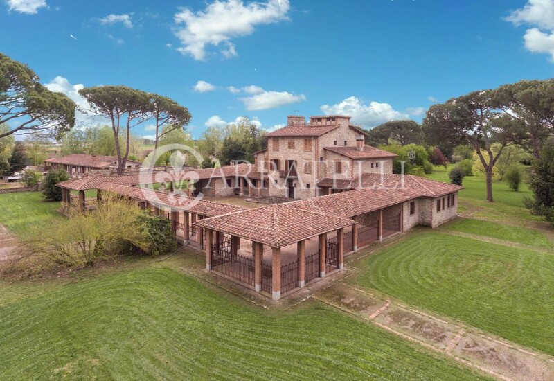 Beautiful historic complex on the Tuscan hills, which presents a great source of development for the future owner being unfinished and having very large and interesting spaces in the current division. A magnificent manor house with a series of arches, detached house for concierge, an ancient church, trotting track, all surrounded by a large park of 18 hectares near the famous thermal baths of Montecatini and the historic center of Florence. Location A dominant position to be at the center of life and all necessary services - a short distance from the famous thermal baths of Montecatini and all the services that this city can offer, but at the same time at an equal distance from the great cultural capital such as Florence and Pisa, which are about 45 minutes by car and also boast the presence of an airport. In the quiet of the Tuscan hills that can give maximum privacy and tranquillity to the people who choose this property as their home or a place to develop a luxury resort. Description The complex is currently represented by 4 buildings of different sizes, including the main villa, concierge’ house, secondary villa and small church. The main villa of about 1200sqm with a large courtyard enclosed by a portico consists of 43 rooms, arranged on three staggered levels and a single room in a turret. Large rooms, very bright spaces and with great heights, the presence of the fireplace lend themselves well to create an environment of great representation and charm. The guardian's house of 95sqm at the entrance to the territory of the complex, a secondary villa characterized by original stone walls on two levels of 440sqm. They too have different environments that can be enhanced and distributed according to the needs and pleasure of the future owner. To complete the property there is also a beautiful 105sqm private chapel. State and finishes The whole complex at the moment is unfinished, with partial finishes in certain rooms and the need of complete renovation with the choice of dividing spaces as desired. The land is buildable and there is the possibility of building another 3000 square meters of living or recreation spaces, with the presence of a construction project for a high-end resort with many activities. Further information available upon request. Outdoor spaces A large park of about 18 hectares with arable land, and a large part dedicated to the trotting track. There are two water wells to provide irrigation, one of which has existed for a long time and one has recently been completed. The property boasts a water reserve, recently expanded, for use in periods of drought. According to the geophysical and geo-gnostic investigations carried out with the direction of the geologist, there is a high possibility of having thermal water high. Large open spaces allow you to create many recreational services - various swimming pools, tennis courts, football and even mini golf. Potential use The complex is well suited to create a high quality resort with many outdoor sport activities - swimming pool, pond, tennis court, trotting track, or a complex of apartments of various sizes in the Tuscan green with the creation of a sports facility / recreation in common.