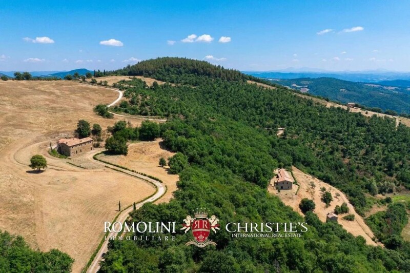 On the hills of Umbria, in the Nestore Valley, not far from the Tuscan border and a few kilometers from Città di Castello and Monte Santa Maria Tiberina, rustic farmhouse for sale. The building (440 sqm) is nearing completion, with predisposition for all installations, and is surrounded by approximately 7.7 hectares of hilly land. Basic services are available in the nearby village (5km; 10’), while for everything else you need to reach Città di Castello (28km; 30’). From here there is also access to the E45 motorway linking Ravenna and Rome, providing excellent connections to many towns in the Tiber Valley. DESCRIPTION OF THE PROPERTY The farmhouse (440 sqm – 4,734 sqft) is on two floors and is currently divided into twenty-two rooms. The rustic state allows ample flexibility in the final distribution of the rooms. The ground floor is currently designed mainly as a living area with large sitting rooms, kitchen, dining area, bedroom/study, two bathrooms, as well as accessory rooms such as a cellar and laundry room. On the first floor there are four large bedrooms with as many bathrooms served by a large central hallway/living room with fireplace. This building of medieval origin, probably built as a watch tower, with its position at 500 m above sea level offers a splendid view over the valley in the watershed between Umbria and Tuscany with an optimal southern exposure. The farmhouse is currently in an advanced rustic state and has been renovated to a high standard in all aspects (earthquake-proofing, quality of materials, thermal insulation) and with all the necessary preparations for the electrical and plumbing systems. In accordance with the town planning regulations in force, it is possible to obtain permission for the construction of an outbuilding of approximately 40 sqm. The pertaining agricultural land has an extension of approximately 7.7 hectares (19.0 acres). POSSIBILITY OF ADDITIONAL PURCHASE The property is part of a larger estate consisting of three buildings and land in a hilly landscape of considerable value in the upper Tiber valley between Umbria and Tuscany. The Nestore Valley is an unspoilt area where the river Nestore, hence the valley’s name, flows into the Tiber. The current owners are considering either the sale of the individual bodies that make up the compendium or, alternatively, the sale of the entire property. The landscape context and the beauty of the place suggest a use for residential purposes, but also a tourist vocation for the property. CLOSEST CITIES AND TOWNS Closest services (5km; 10’), Monte Santa Maria Tiberina (14km; 30’), Città di Castello (28km; 30’), Umbertide (28km; 30’), Anghiari (32km; 50’), Cortona (34km; 55’), Sansepolcro (44km; 45’), Gubbio (56km; 1h 5’), Perugia (61km; 1h), Montepulciano (68km; 1h 30’), Pienza (75km; 1h 35’), Assisi (78km; 1h 15’), Montalcino (93km; 1h 55’), Orvieto (125km; 2h) CLOSEST AIRPORTS Perugia San Francesco (60km; 1h), Firenze A. Vespucci (135km; 2h 5’), Forlì L. Ridolfi (144km; 2h 10’), Ancona R. Sanzio (163km; 2h 10’), Pisa G. Galilei (196km; 2h 45’), Bologna G. Marconi (220km; 2h 50’), Roma Ciampino (242km; 2h 55’), Roma Fiumicino (256km; 3h).