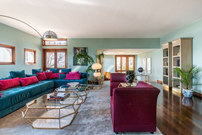 In the heart of Tuscany, in a dominant and panoramic position over Montecatini Terme and the valley, this beautiful 1970s design villa is characterized by modern and contemporary architectural details. The house is spread over two levels and 5 staggered floors that follow the line of the hill, for a total of 560 sq. m. Opening onto the garden with large French windows that fill with light and open the view over the valley. It has a large and elegant entrance that leads to the bright living room with fine finishes such as parquet flooring and has access to the garden. The house has two master double bedrooms, both with en-suite bathrooms, one on the top floor, opening onto the terraces, and one on the night floor below with a balcony. On the same floor there are also two single bedrooms each with private bathroom and study room and another beautiful living room that opens onto the garden to embellish the house and adjacent to the peninsula marble kitchen which leads to the pantry. A laundry room with wardrobe and a precious marble bathroom for guests complete the floor. One of the most beautiful features of this property, in addition to the unique and contemporary style, is the open roof terrace, featuring a fireplace with an integrated grill and panoramic views over the entire valley. Another plus is the garage with 2 parking spaces and a vault room. The villa, with great privacy, is surrounded by a fully fenced and well maintained garden of about 5,000 square meters.