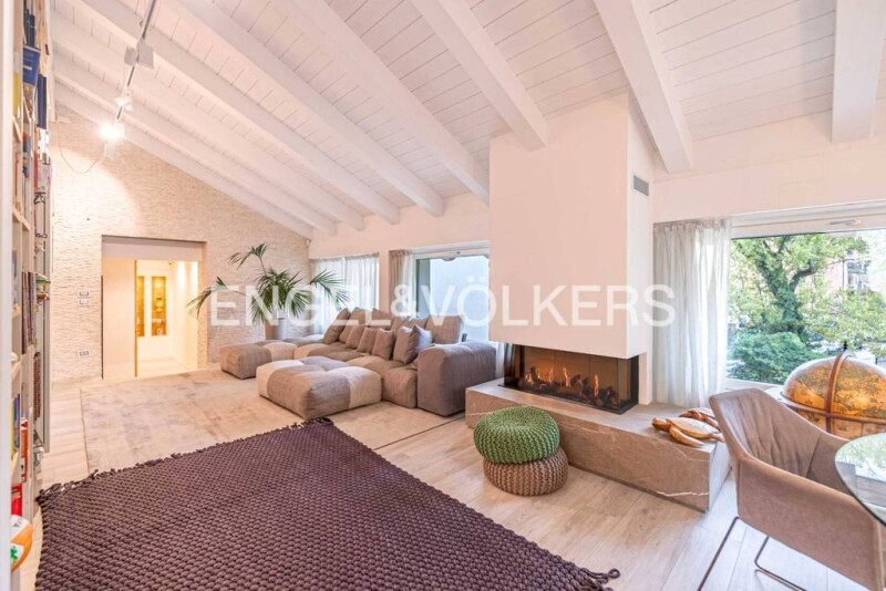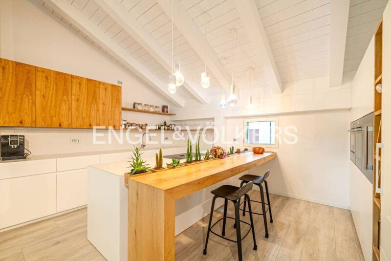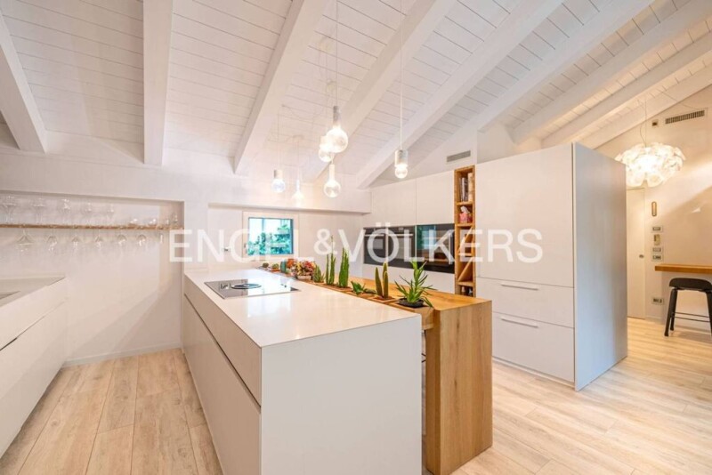 This apartment is located on the second floor of a modern building in a privileged position that combines tranquility with the convenience of being a few steps from the historic center. The large living area is located in an arm of the building, of which it constitutes the highest point, and which extends along the Botteniga river; it is the beating heart of the house: a large and bright space thanks to the large windows that overlook a panoramic veranda, ideal for outdoor dinners or for moments of relaxation, with a pleasant view of the river water, a perfect place to relax and enjoy the surrounding nature. The modern kitchen with island is integrated into the living area, designed to offer a convivial environment where the preparation of meals marries with everyday life. Also in the living area we find a service bathroom and a laundry room, essential spaces for a house that in addition to being beautiful must be comfortable. The sleeping area is separated from the living area to ensure maximum privacy. It consists of three bedrooms, the main one with an elegant and welcoming atmosphere, is equipped with a Jacuzzi and a chromotherapy shower that makes it a true corner of well-being; the other two bedrooms, smaller but comfortable, are perfect as children's rooms, a study or a guest room. A modern and well-finished bathroom is located along the corridor, easily accessible from the bedrooms. The property is completed by a private garage, a good-sized cellar, and two uncovered parking spaces. This apartment combines the functionality of modern spaces with the beauty of the natural and historical context of Treviso, offering an ideal refuge for those looking for a spacious home with all the comforts.