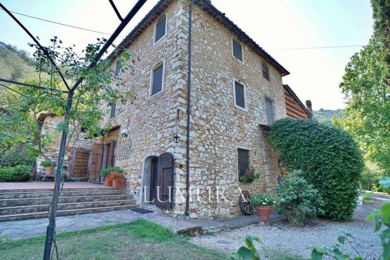 Splendid rustic house from the 1700s for sale on the first hills of Lucca with a stone facade. Good state of maintenance, of about 230 square meters on 3 floors with an annex of about 100 square meters on 2 floors, complete with elegant garden with swimming pool, pergola and panoramic terrace overlooking the Lucca plain, vast land of about 4 hectares in total. . Internally it consists of: on the ground floor porch, 2 large living rooms both with fireplace, one with a dining area, rustic built-in kitchen, 2 cellar rooms, one with a convenient laundry area, closet; on the 1st floor hallway, 2 bedrooms, 2 bathrooms, one with whirlpool tub, 2 closets, external wood-burning oven; on the 2nd floor 3 bedrooms, one with fireplace, one with sitting room and a third with mezzanine / study, bathroom. equipped with double glazing, mosquito nets and electric access gate. The property is completed by the independent dependance inside which features: on the 1st floor a large living area with kitchen and on the ground floor 2 bedrooms and 2 bathrooms.--f4f483637a6ef09d0afc28b853df31f3!.