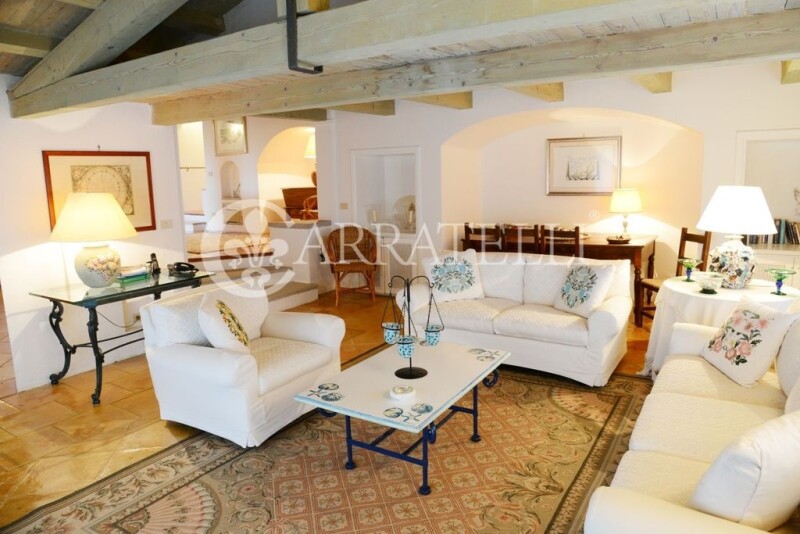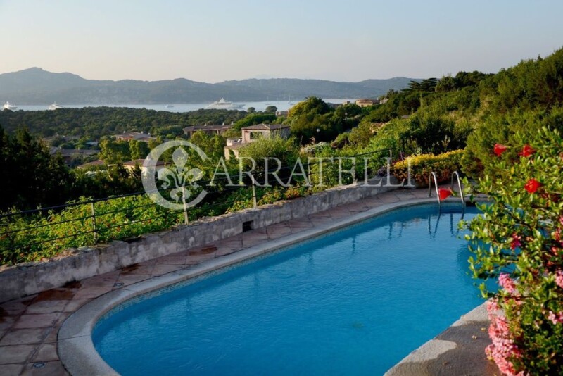 The villa of about 800 sqm stands in a dominant position directly above the famous small square of Porto Cervo surrounded by its private garden of about 1800 sqm embellished by a spectacular swimming pool overlooking the sea . The context is very exclusive, a few steps from the marina of Porto Cervo and its designer stores but away from the chaos where you can appreciate the privacy and harmony of the place . Description The modern 800 sqm villa stands at the end of a closed background road , ploughing through the automatic and private gate we can immediately appreciate its bustling architecture. The villa is structured on three levels each with wonderful sea views and outdoor space . From the main entrance we enter the large living area where three spacious living rooms characterized by large windows overlook the outside . The spacious eat-in kitchen is served by a very convenient pantry area and defiladed from the area intended for the reception of guests . On the upper floor the sleeping area is designed to accommodate nine large double bedrooms with private bathrooms and wardrobe compartment . Perfectly disengaged they all have access to the outside . Not far away , with independent access , is the outbuilding perfectly equipped to accommodate guests or service staff . Outdoor spaces The private land of about 1800 square meters is completely fenced as well as constantly maintained . The classic Mediterranean scrub gives intense scents and wonderful color pictures , there are ancient olive trees , mastic trees , myrtle and wild olive plants as well as spectacular flowering plants . The large terrace overlooking the sea has been equipped for outdoor dining in a private and exclusive setting . The sinuously shaped pool turns its gaze to the marina and the horizon , the panorama offers wonderful sunsets . Everything is quiet and beauty . You can comfortably park three cars inside the private courtyard . State and finishes The villa is in excellent condition whole and exterior thanks to the constant maintenance of the owner family who carefully studied the smallest details . The floors are of terracotta , the ceilings embellished with large wooden beams in light and warm colors , the walls are painted white while in the bathrooms was laid ceramic tiles also in light tones . For the exteriors was chosen the stone that in the facade alternates with light plastering . Potential uses The villa is suitable for spending vacation periods in a private and luxurious setting . It is perfect for hosting friends and organizing parties and events in an incredibly beautiful natural setting Location Porto Cervo needs no introduction , it is famous all over the world . A short distance from the villa present all the primary services , starred restaurants , level stores and banking institutions . Only 15 kilometers from Olbia airport the villa is very convenient to reach the most beautiful beaches of the Costa Smeralda as well as Porto Cervo and Porto Rotondo . The most fashionable nightclubs are only 10 minutes away by car. Perfect location to live a dream vacation surrounded by nature and the beauty of the crystal clear sea .