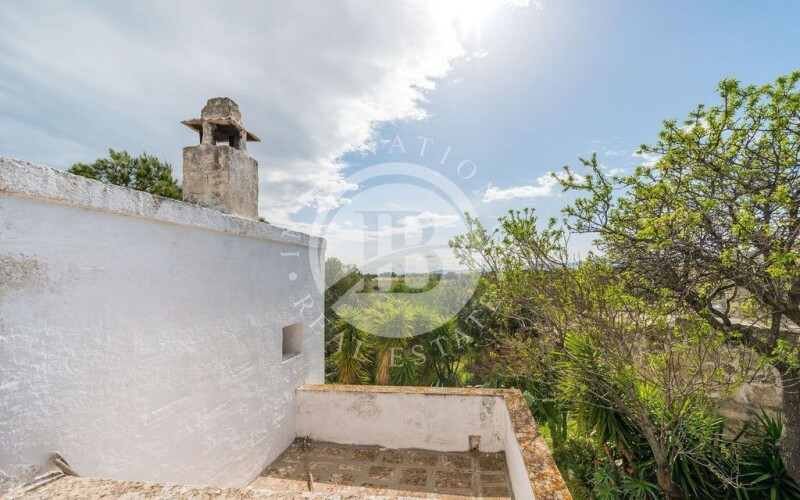 This property consists of a main farmhouse with a spacious entrance patio/terrace. Inside, you will find three bedrooms (one on the first floor), a living room, a large kitchen, and a bathroom. On the lower floor, there is a large stable partly carved into the rock with a courtyard, an independent room with a patio, another courtyard with a room and a cave, and an old stable. The surrounding land, approximately 4,000 square meters, is planted with trees that provide shade and a tranquil environment. This property is a unique opportunity for those who wish to live immersed in the historical and natural beauty of the Savelletri countryside, with the convenience of being close to the sea and prestigious facilities such as the San Domenico golf course.