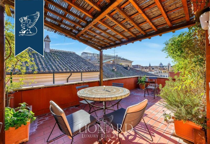 Nestled in the heart of Rome, this penthouse offers a charming blend of historical allure and modern comfort. Spanning two levels with a total area of 90 sqm, the property boasts a balcony and a 35-sqm panoramic terrace overlooking the city's iconic landmarks, including St. Peter's Basilica. Situated in a quiet and elegant district near Campo dei Fiori and the Pantheon, the location ensures easy access to key attractions like the Trevi Fountain and Piazza Navona. The first level comprises a spacious open-plan living room, a dining area, a fully equipped kitchen, a bathroom with a bathtub, and a bedroom. A stone staircase leads to the second level featuring a bright bedroom, a wardrobe, and a writing corner. This level also grants access to a splendid terrace furnished with seating and sun loungers, offering a breathtaking 360-degree view of Rome's picturesque skyline. Ideal for both residential and accommodation purposes, this property promises a luxurious lifestyle immersed in the enchanting Eternal City. Ref: 11287.