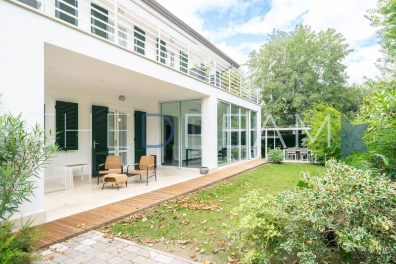 LOCATION Villa Aurea is a splendid semi-detached villa immersed in the center of Forte dei Marmi. The strategic location just 350 meters from the sea offers the convenience of reaching in a few minutes on foot or by bicycle the most renowned beach resorts of Forte dei Marmi and the historic center with prestigious high fashion boutiques and renowned restaurants, creating a combination of luxury and comfort in the heart of the city. Forte dei Marmi also offers the convenience of reaching important historic cities such as Pietrasanta, Florence, Lucca and Pisa, as well as the fascinating Cinque Terre on the Ligurian coast. GARDEN AND OUTDOOR SPACE The property has a private garden of approximately 305 sum, enriched by a welcoming porch set up with a living area and an outdoor dining area, perfect for spending convivial moments with friends and family during the long summer days. On the first floor, two terraces offer additional outdoor spaces, equipped with sun loungers and a relaxation area, from which you can admire a view of the surrounding landscape, creating ideal corners for relaxation. The privacy of the villa is ensured by a hedge that surrounds the property, while a driveway gate leads to a parking area that can accommodate up to two cars. This perfect balance between internal and external spaces makes Villa Aurea a unique residence, ideal for those seeking tranquility and comfort in the heart of Forte dei Marmi. INTERNAL LAYOUT Ground Floor: Entrance, open-space living room with living area and dining area, eat-in kitchen, hallway, guest bathroom, laundry/technical room, porch. First Floor: Hallway, double bedroom with en-suite bathroom with access to the terrace, double bedroom with access to the terrace, bathroom with Jacuzzi, double bedroom with en-suite bathroom with access to the terrace. FINISHES Villa Aurea stands out for its modern and refined style, made even more precious by the use of high-quality materials that enhance its elegance and sophistication. The interior spaces, large and expertly distributed, have been designed to ensure maximum living comfort, with particular attention to functionality and well-being. The facades of the villa, plastered with delicate tones, blend harmoniously with the hipped roof, which recalls the traditional architectural character. The large double-glazed windows not only ensure optimal natural lighting, but also create a bright, warm and welcoming atmosphere in every room. Inside, the floors of the living area are finished in resin, while in the sleeping area the parquet gives a touch of warmth and intimacy. The elegant and spacious bathrooms are equipped with a bathtub or large shower cubicles, offering a relaxing experience. The designer furnishings, selected with care and attention to detail, combine sophisticated aesthetics and functionality, creating environments that express luxury and comfort.