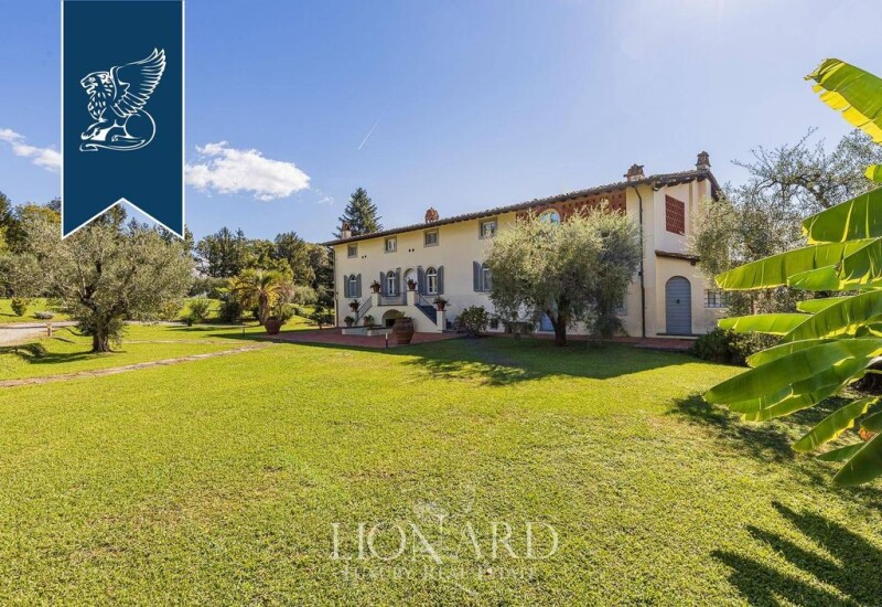 This prestigious luxury villa is for sale near Capannori, just a few kilometres from the wonderful town of Lucca. The vast park surrounding the villa measures two hectares and is embellished with plants and trees, forestal areas, olive groves, a fabulous swimming pool and a romantic gazebo. This beautiful, three-storey property measures 900 sqm overall and houses eight elegant bedrooms and seven bathrooms. The ground floor features a large living room with a typical fireplace, a fabulous dining room, a study, and a basement area furnished with a wood-burning oven, completed by a splendid, fully-equipped kitchen. On this floor there is also a bathroom with a shower and another spare bathroom. The mezzanine of this estate houses a double bedroom, a bright sitting room, and a laundry area with an ironing room. An elegant stone staircase leads to the upper level, where there is a sleeping area with three comfortable double en-suite, while the top floor includes three additional bedrooms, a sitting room, a kitchen, and a splendid living room. Furnished with extreme taste and finished with quality materials such marvelous terracotta floors, this majestic estate is a property of timeless charm in the heart of Tuscany. Ref: 6350.