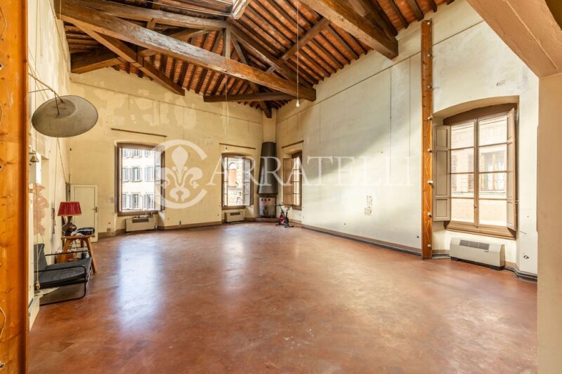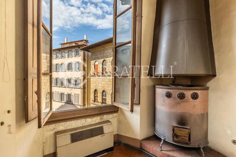In the heart of the historic center of Florence, overlooking Piazzetta Antinori and Via Tornabuoni, in an ancient palace with important entrance, apartment on the top floor of the building, currently without elevator, but with condominium parking space; the apartment also has a balcony overlooking the bell tower of the Duomo and measures about 270 sq. m. commercial to renovate Location Piazzetta Antinori is located at the end of Via Tornabuoni, in the most prestigious part of the historical center, a stone's throw from Piazza della Repubblica and 10 minutes from Piazza della Signoria and 5 minutes from the Station. You can reach all the most important monuments of the City on foot. Description The apartment, penthouse floor, consists of entrance hall, large quadruple living room with truss ceilings about 7 meters high, kitchen, number two bathrooms and number three additional rooms to be allocated during renovation. The quadruple living room can be kept as a single space or divided and lofted as needed. It is assumed either the possibility to create a major open space or to subdivide the property into several apartments as well. Stunning views towards Piazzetta Antinori, a small but lovely terrace/balcony overlooking the bell tower of the Duomo complete the property. State and finishes The property is completely in need of renovation and preserves intact the architectural features of the period such as the ceilings partly coffered and partly with exposed beams, decorated and frescoed walls to be restored, old terracotta floors. Potential uses The property is suitable for a very discerning client who wants to reside in the heart of the Historic Center of Florence, at the end of the Shopping Street, who loves large representative spaces and wants to live in an ancient period palace. We do not exclude the possibility of subdividing the spaces and obtaining multiple units also to be put to income. The parking space, although in condominium space, makes such real estate unique and prestigious.