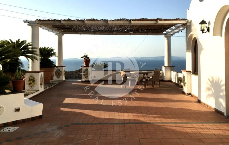 Elegant villa with swimming pool and garden - Anacapri (Campania) Elegant villa accessible by car, in a quiet and peaceful area. Entering the main gate, a beautiful avenue leads to the main terrace on which there is an enchanting generously sized swimming pool. The view of the Gulf of Naples and Ischia which can be enjoyed from every single room is very suggestive, guaranteeing beautiful sunsets that will take your breath away. The villa has a useful internal surface area of 300 m2 and is distributed over two levels. The first level has a large living room with fireplace, three bedrooms and two bathrooms. The lower floor, accessible both from an internal and external staircase, is composed of a large living room whose window gives access to a large equipped terrace, kitchen, two bedrooms, two bathrooms and a cellar room in a rough state from which a ' additional room. Large garden spaces covering a surface area of 2,000 m2 complete the villa.