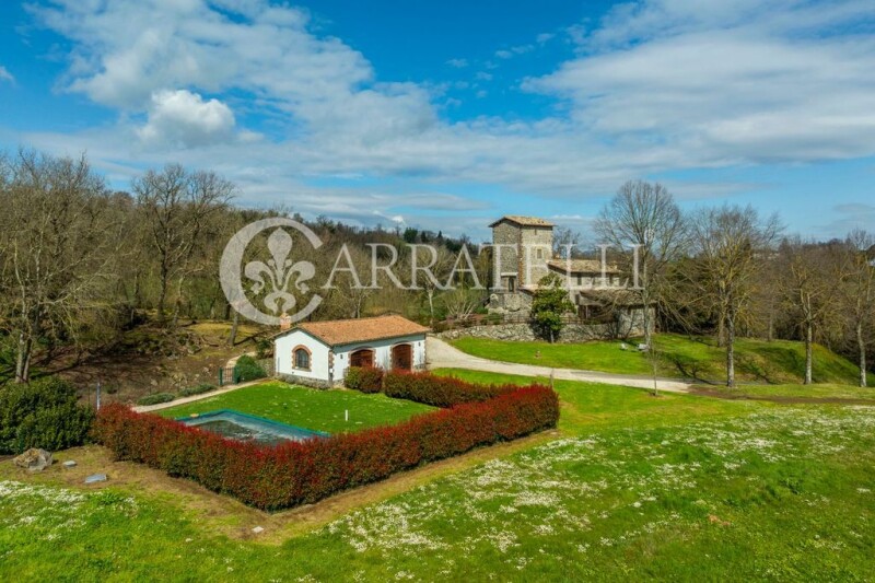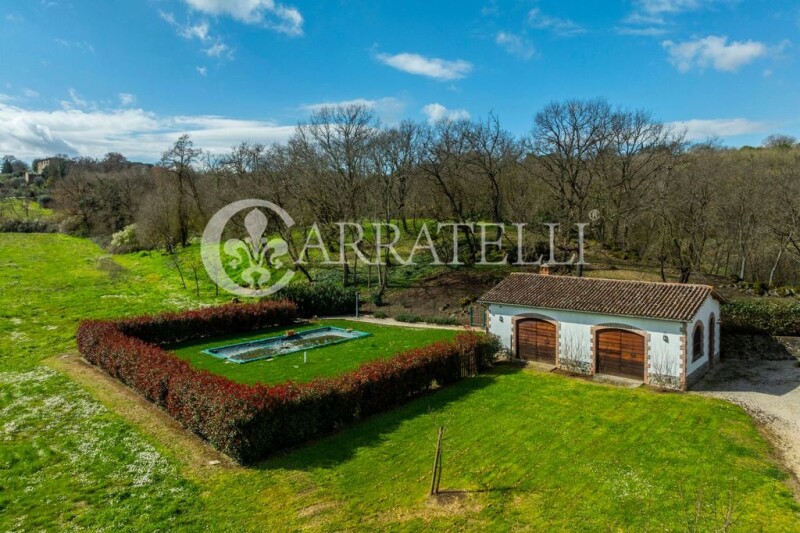 In a beautiful landscaped setting, an ancient monastery from the 1600s used as a farmhouse with swimming pool and pond is offered for sale. Description The farmhouse, an ancient monastery-style watchtower, is spread over 4 levels for about 390 sqm total. On the ground floor, the very spacious main entrance leads to the entire living area, conveniently divided into a kitchen, dining room, living room with billiards, as well as a service bathroom and utility room. The whole floor is conveniently served by French doors leading to the garden and barbeque area. We then continue to the first floor via either internal or external staircase, where we find 2 double bedrooms with en suite bathrooms, a sitting room with kitchenette and a convenient laundry room. We then proceed to the second floor via an all-stone staircase to a third double bedroom with en suite bathroom and storage/laundry room on the third and last floor. Finally on the basement floor there is storage room and technical room. Outbuildings Included in the property being sold are an annex now warehouse of about 75 square meters, with the possibility of converting into an attached dwelling/depandance, and street level are included caves now used as a cellar/storage room. Outdoor spaces Part of the property is a plot of about 3.7 hectares, mainly forest. In the large and spacious garden there is space for a nice 5x10 swimming pool and not far away is included a nice pond where you can fish or grill outdoors. State and finishing touches The property has undergone two renovations, in 1990 and in 2017. To date, the entire property is in excellent condition, with an insulated roof and up-to-date installations. The rooms all have air conditioning. The heating system is oil-fired. Regularly connected to waterworks and power line. Potential uses The property lends itself perfectly as a second home, but also as a private residence, considering the comforts and proximity to services. Also perfect to be put to income, as exploited to date by the current owners. Location The property is immersed in the countryside of Orvieto, but very close to services and just a few minutes drive from Orvieto. Orvieto, is a famous tourist half, famous for its history dating back to Etruscan-Roman times, and for the typical products of the area that it offers, in fact there are numerous restaurants and stores typical of these towns. Thanks to its central, easily accessible location we have at just 10 km the entrance to the A1 highway, which makes it possible to reach Rome (135 km) and Florence (165 km) in about an hour and a half. From here the Tyrrhenian Sea is 70 km away. The international airports of Rome Ciampino and Rome Fiumicino are 138 km and 167 km away, respectively. Lake Bolsena is about 25Km away, and places of interest such as Perugia, Montepulciano, and Montalcino are within 90Km.