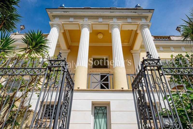 This magnificent villa reigns supreme on the most iconic promenade in Capri, the famous Via Tragara. Built and designed in 1920 on commission by the painter Goffredo Paolucci Sinibaldi, this imposing historic residence is completely different from any other residence in the Capri landscape. The grandeur and majesty of the villa are evident in the four neoclassical columns and the triangular pediment shaped like a temple. The double stairway entrance leads to the large loggia below the columns, which offers two outdoor terraces with an extraordinary view of Marina Piccola. The interior of the villa is just as impressive as the exterior. The large entrance portal introduces us to a prestigious hall with majestic internal heights and large windows facing the outside. An equally impressive hallway separates the two suites, divided over two levels, with a sleeping area and a sitting room. Each suite has a double en-suite bathroom. A spacious kitchen and a third bedroom with a bathroom with independent entrance from the outside complete the first floor. The second floor is a penthouse consisting of a large double living room, 4 bedrooms, and a kitchen. The large representation and the master suite overlook one of the most significant terraces on the island which gives each room great brightness and an incomparable panorama that totally dominates the most glamorous island in the world! This is an unparalleled opportunity to acquire a piece of Capri's history and live in one of its most iconic and exclusive properties. If you're interested in learning more about this incredible villa, don't hesitate to contact us.