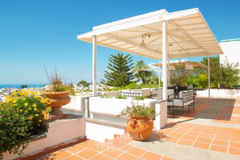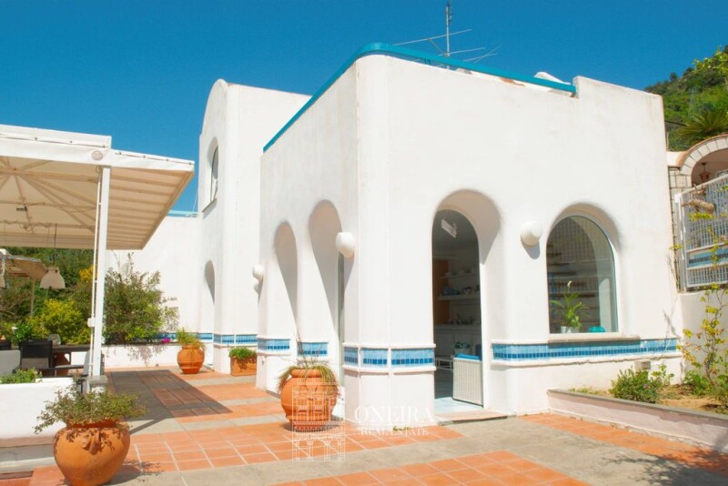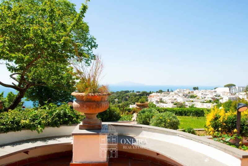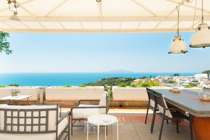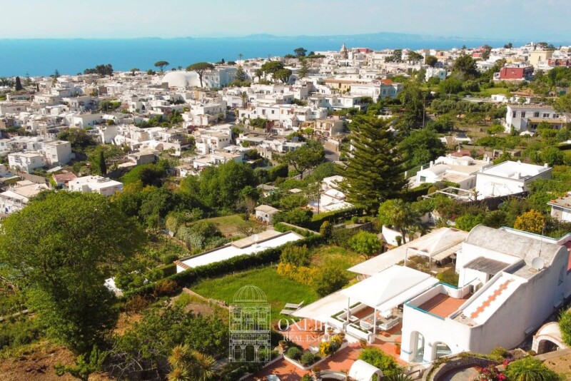 Enchanting Panoramic Villa Nestled In The Historic Center Of Anacapri Nestled in the heart of the picturesque village of Anacapri, with unparalleled panoramic sea views, this enchanting semi-detached villa is spread over three levels and surrounded by wonderful outdoor spaces, including large terraces and a lush garden. The terraces, all facing the sea, are extraordinarily bright and offer splendid views. The first level welcomes us with a large living area with an open kitchen that enjoys numerous accesses to the terrace, which provide an extraordinary interior brightness. This level also includes a bedroom and a bathroom, all adorned by a beautiful custom-made staircase leading to the upper level. The second level consists of a large terrace, facing the sea and the village, offering a breathtaking panorama. A bedroom and a bathroom are located here, making this floor an oasis of tranquillity with an extraordinary view. The villa includes another area, used as living quarters, which has its own independent access, giving it considerable privacy. This large unit has a panoramic terraced area and consists of a living area, a kitchenette, a bedroom and two bathrooms, as well as a large storage room. The villa has a splendid architectural style that blends perfectly with the surrounding environment. This light-coloured style is exemplified by its characteristic dome and the excellent layout of the external spaces. This harmony between architecture and landscape makes the villa an authentic example of Capri elegance and tradition. Located in a residential context, which guarantees a quiet and safe environment, it is ideal for those looking for a perfect combination of privacy and proximity to the conveniences of the village of Anacapri. The brightness of the interiors, combined with the extraordinary view of the sea and the town, makes this property unique.