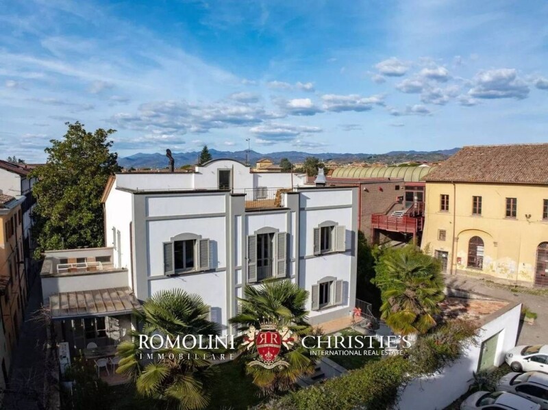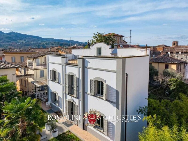 Villa delle Palme is an elegant Art Nouveau building that enjoys a unique privacy despite being within walking distance of the heart of the city. The property (over 400 sqm) is surrounded by a private garden accessed from the gate via a stone staircase on either side of which stand out tall palm trees that complete the symmetry of the façade. The property, dating back to the 1920s, is enclosed by walls that raise it above the level of the quiet Piazza San Francesco. Amenities are all available in Città di Castello’s lively historic center, and its proximity to the E45 freeway interchange provides quick access to much of the Tiber Valley as far as Rome (just over two hours by car). DESCRIPTION OF THE BUILDING The villa spans a total of four floors. The entire property winds around a charming staircase of fine honey-stained wood that wraps around the central core of the structure, within which is a modern ivory-paneled elevator that allows comfortable movement of people and loads from the lower ground floor to the attic. The ground floor consists of an entrance hall, living room, sitting corner, kitchen with veranda, bathroom and equipped laundry room. Access to the garden from all living areas makes it the ideal environment to spend pleasant moments of conviviality and relaxation in total privacy. Going up to the first floor one finds two double bedrooms, one of which has a large en-suite bathroom and a generous terrace overlooking the rooftops of the historic center. The two bedrooms are divided by a room used as a wardrobe with a second adjacent bathroom. On the second floor, the property offers an additional bedroom, bathroom and a space with provision for use as a kitchen with direct access to the sunny 60-sqm terrace overlooking the square, which the owners have already arranged for conversion into a sunbathing area with Jacuzzi tub. A staircase descending from the living area on the ground floor also leads to a wide corridor equipped as a checkroom (with numerous cleverly exploited spaces lit by LED strips) connected to the wine cellar. This space is made entirely of large planks, niches and modular wine racks made of natural raw wood and allows one to enjoy the pleasures of tasting in a quiet and warm atmosphere with soft lighting, gathered around a round tasting table equipped with stools also made of raw solid wood. Walking down the corridor in the opposite direction leads to an apartment that has a separate entrance from the alley that runs along the left side of the villa. The owners wanted to create this separate living unit to accommodate guests without limiting their privacy. This apartment is on two levels. On the street level a cozy living room is connected by a few steps to the upper level where the dining room, kitchen, a bathroom and a double bedroom are located. On the right side, on the other hand, the villa enjoys a firewood storage with a shed for sheltering motorcycles and bicycles. STATE AND FINISHES The property does not need any restoration, having been very recently consolidated and renovated (2018) in compliance with the most modern canons of technological livability, with great attention to maintain, without distorting it, the flavor of Art Nouveau taste. Villa delle Palme appears very harmonious both internally and externally: the choice of all materials, finishes and fixtures has been guided by the style of the building which is then able to accommodate custom furnishings, always respectful of the original style of the building. CLOSEST CITIES AND TOWNS Closest services (50m; 1’ on foot); Citerna (13km; 15’), Monterchi (14km; 15’), Monte Santa Maria Tiberina (16km; 30’), Sansepolcro (19km; 20’), Montone (22km; 20’), Anghiari (24km; 25’), Umbertide (25km; 20’), Arezzo (40km; 45’), Cortona (54km; 1h 5’), Passignano sul Trasimeno (65km; 55’), Gubbio (52km; 45’), Perugia (56km; 50’), Assisi (69km; 50’), Siena (107km; 1h 40’), Firenze (117km; 2h) CLOSEST AIRPORTS Perugia San Francesco (54km; 40’), Firenze A. Vespucci (128km; 1h 40’), Bologna G. Marconi (193km; 2h), Pisa G. Galilei (196km; 2h 20’), Roma Ciampino (235km; 2h 25’), Roma Fiumicino (253km; 2h 35’).