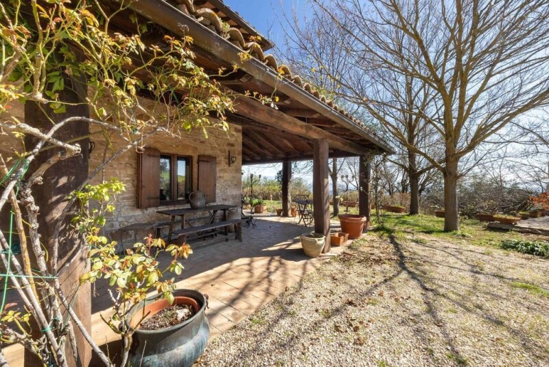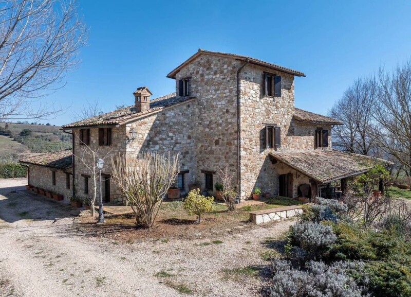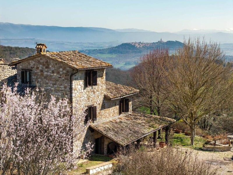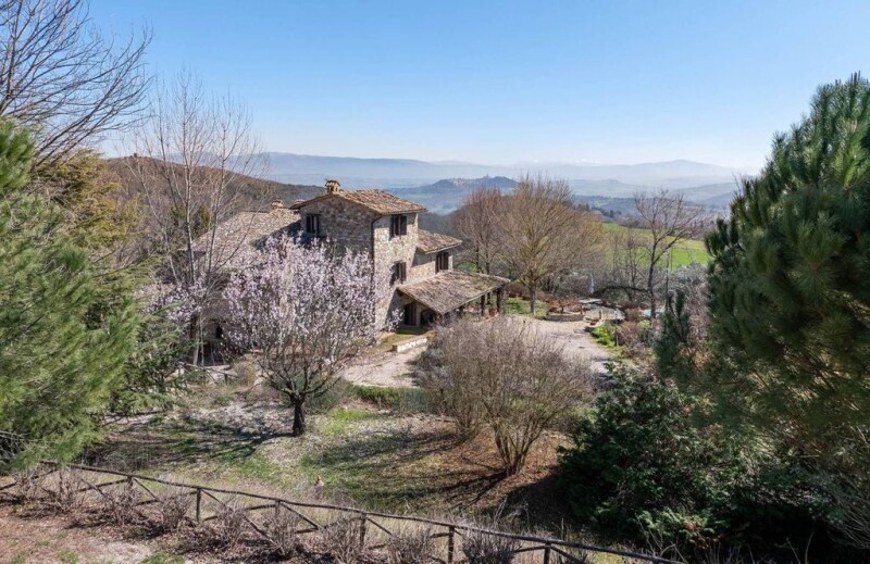 With breathtaking views of the old part of Todi and the rolling Umbrian hills, this beautiful farmhouse from the 1800s enchants with its timeless charm. Renovated in the early 2000s, the intervention was able to enhance every authentic detail, preserving the soul of the typical umbrian farmhouse. Rebuilt entirely with its original stone, the interior is distinguished by fine materials: authentic terracotta tiles, ceilings with exposed wooden beams and spaces cleverly redesigned to ensure comfort and elegance. On the ground floor we are welcomed by two majestic living rooms both with fireplaces, a kitchen with a warm and familiar atmosphere, a bedroom with a private bathroom ideal for receiving guests, a study, a laundry room and a service bathroom. Going up to the second floor, the sleeping area opens to four bright bedrooms each with en-suite bathroom, refined walk-in closet and overlooking a spectacular view. At the very top, in the charming turret, is an additional bedroom with bathroom, an exclusive corner of peace and privacy. Outside, the two-hectare park guarantees privacy and unspoiled nature, surrounded by 120 centuries-old olive trees, fragrant rose gardens, majestic cypresses and fruit trees. A few steps away from the farmhouse, a wonderful 6x16 swimming pool provides moments of relaxation with panoramic views, while a delightful stone guest house and two wells complete this dreamy property. Access is through a few meters of white road that leads gently to the property, immersed in the tranquility of the hill but perfectly connected: the historic center of Todi is only 6 km away, essential services and the entrance to the highway are just minutes away, while the hospital and emergency room are just 10 km away. An exclusive retreat where history, nature and comfort meet in perfect harmony.